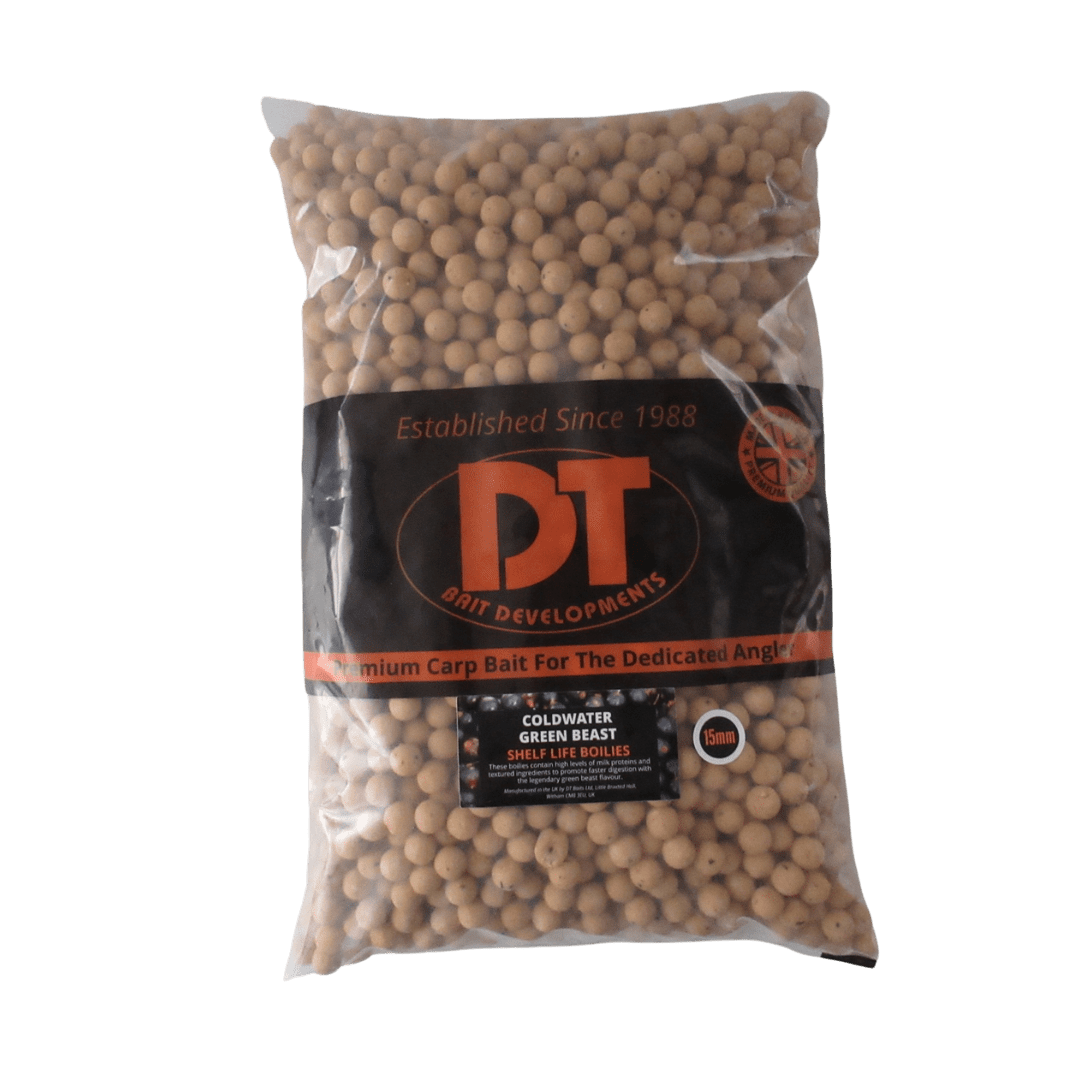 There are Winter Boilies and then there is THE Winter Boilie. Specifically developed for winter fishing, DT Baits Cold Water Green Beast Boilies are formulated to catch carp, even in the coldest conditions. Containing the finest quality, ultra soluble flavour’s and attractors to ensure they continue to leak attraction when the water reaches its lowest temperatures.