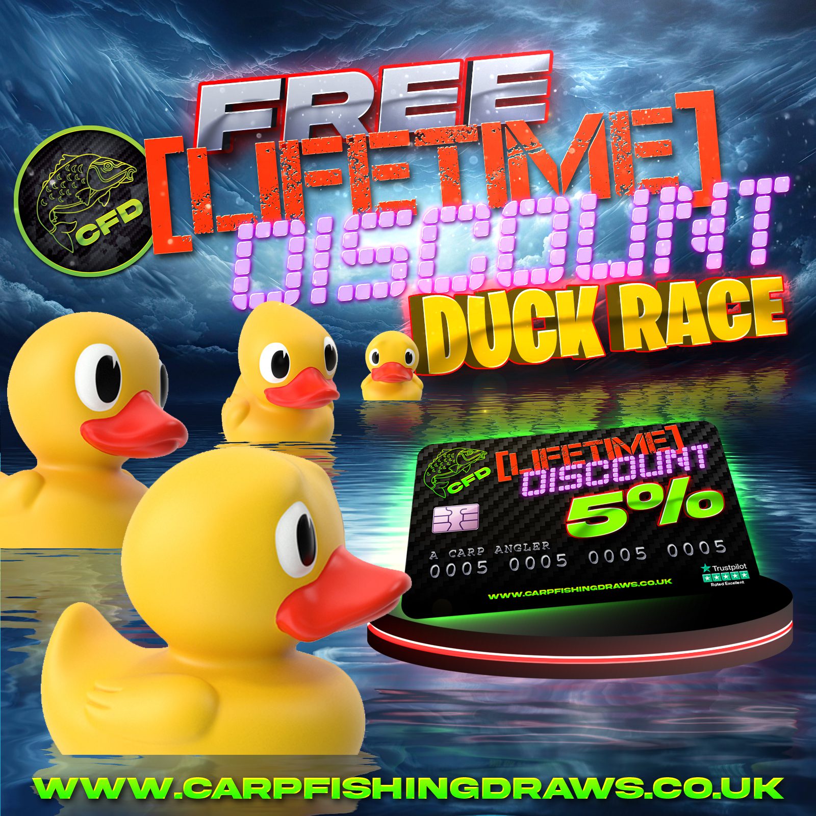 You may enter the competition online or for free by post by sending your entry to Carp Fishing Draws on a postcard. You must have an account on Carp Fishing Draws for your entry to be processed. All details on your entry MUST correspond to the details on your account to receive the order confirmation and ticket number. Postal entries received without a registered account cannot be processed.