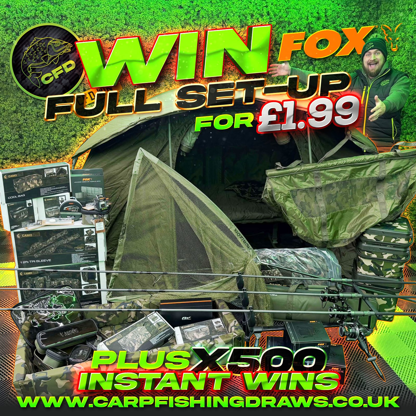 The live draw will take place on the Carp Fishing Draws Facebook page using Google’s random number generator to select the winning ticket number from all Entrants.