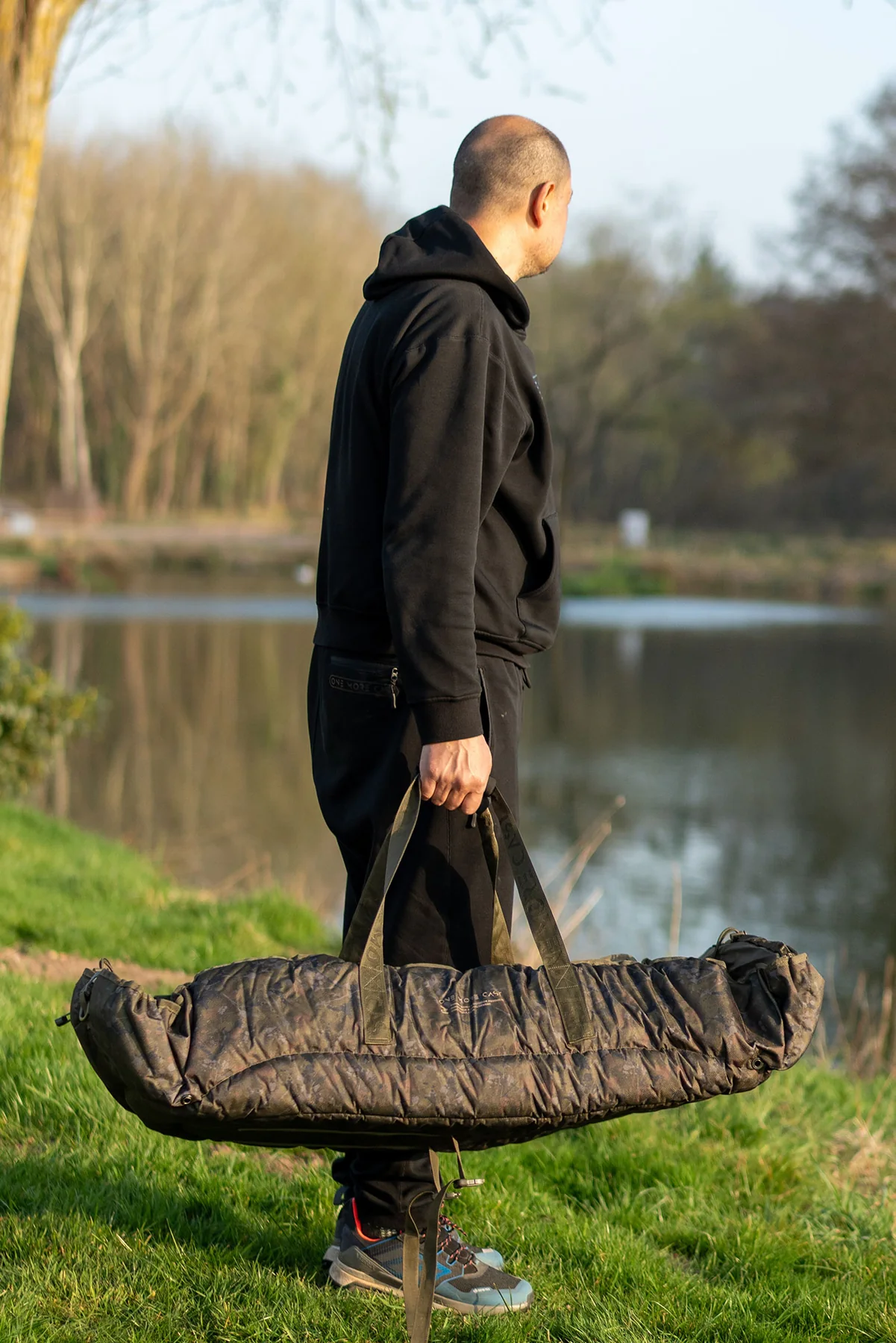 As anglers we’re the responsible party when we take the fish out of their home to herald on the scales, therefore OMC have left no stone unturned in the development of the PB Sling; which of course features the signature Splash Camo, but far more importantly the design has evolved around the use of a MARINE GRADE soft touch rubber mesh to deliver more comfort and calm for the fish during periods of being weighted or retained. This PREMIUM Soft Touch Mesh Material dramatically reduces the change of damage to fins and of the Carps outer protective slime. Full Foam covered bars with Night Reflective Fabric Accents to allow vigilant anglers to monitor the fish during SHORT period of retention.
