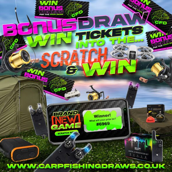 The live draw will take place on the Carp Fishing Draws Facebook page using Google’s random number generator to select the winning ticket number from all Entrants.