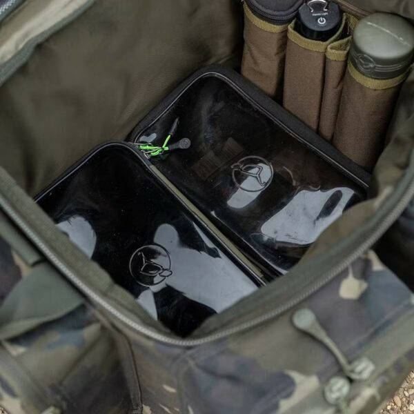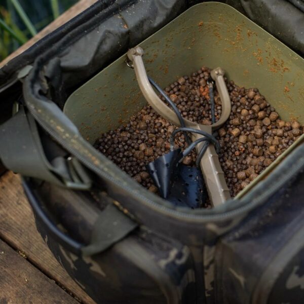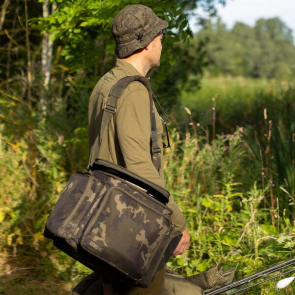 The Dark Kamo Compac Cube Carryall is aimed at the shorter session angler, for those who don’t take much kit with them, or as a neat way of organising all of your tackle in addition to using other items from our luggage range on longer sessions. It has been designed with a central, cube shaped compartment measuring 12 inches on each side, with a 30 litre capacity, which can be used to store larger items, as well as featuring a pocket that will hold a small tablet device in a case, plus a zipped pocket on the underside of the lid.