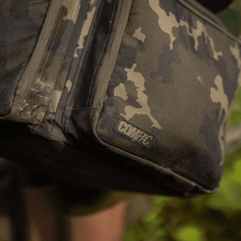 The Dark Kamo Compac Cube Carryall is aimed at the shorter session angler, for those who don’t take much kit with them, or as a neat way of organising all of your tackle in addition to using other items from our luggage range on longer sessions. It has been designed with a central, cube shaped compartment measuring 12 inches on each side, with a 30 litre capacity, which can be used to store larger items, as well as featuring a pocket that will hold a small tablet device in a case, plus a zipped pocket on the underside of the lid.