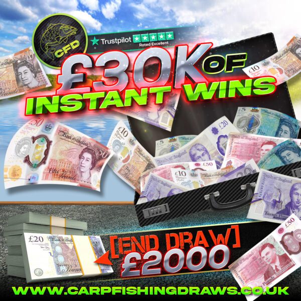 The live draw will take place on the Carp Fishing Draws Facebook page using Google’s random number generator to select the winning ticket number from all Entrants.