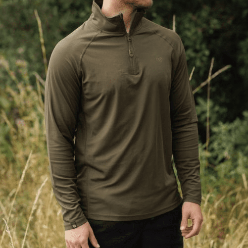 The garment’s innovative fabric offers certificated UPF 50 protection, effectively blocking 98% of the sun’s harmful rays. This significantly reduces your risk of sunburn and long-term skin damage, offering better protection than most sunscreens. With long sleeves and a high zip neck the top is designed to cover and protect large areas of your skin so you can enjoy your time on the bank knowing you’re well-protected.