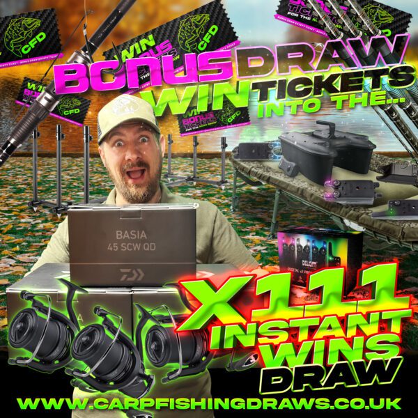 The live draw will take place on the Carp Fishing Draws Facebook page using Google’s random number generator to select the winning ticket number from all Entrants.