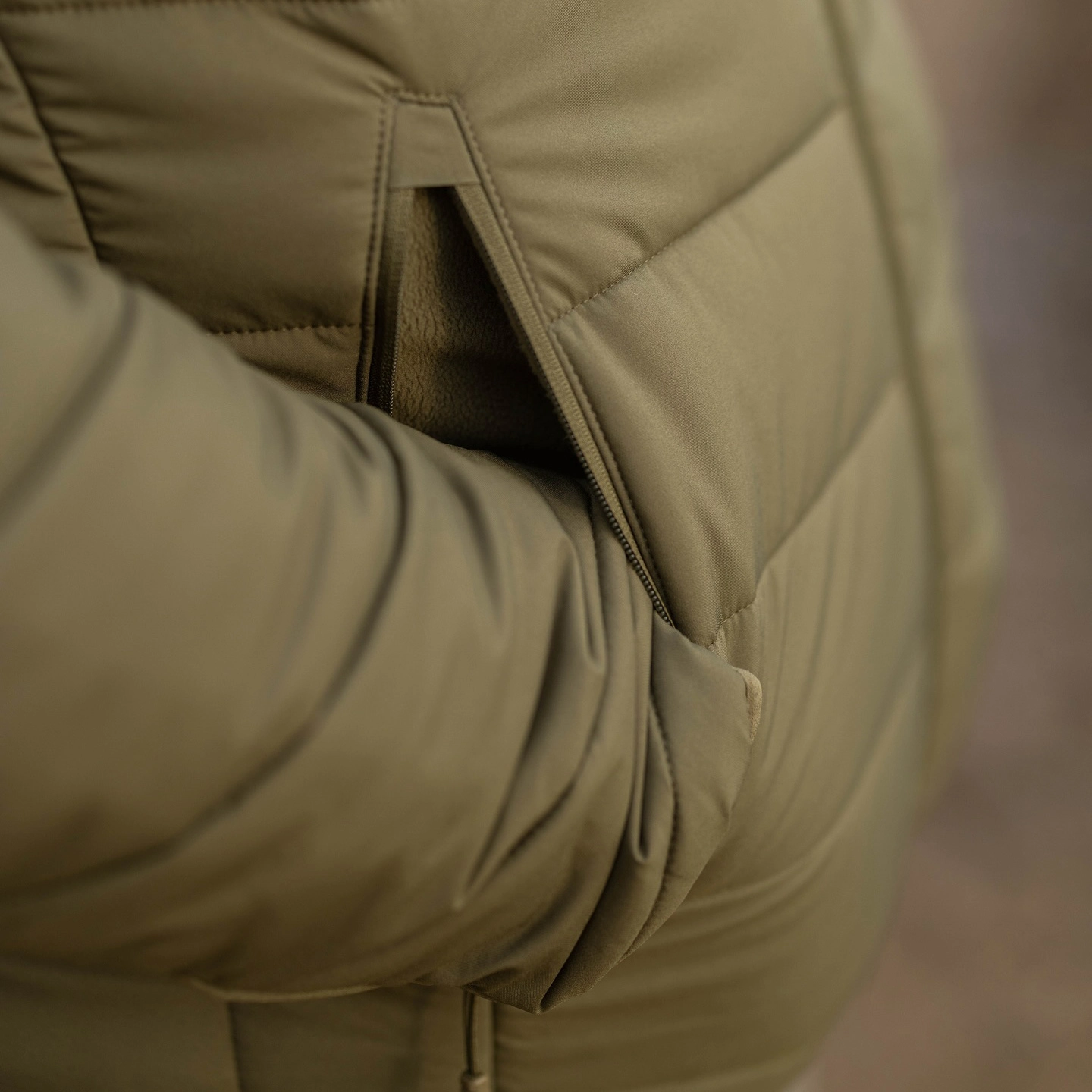 The Thermolite Puffer Jacket is also highly water resistant, due to the outer material having a 3K hydrostatic head and a DWR (durable water repellent) coating, which is unique to this jacket and an industry first. As well as being water resistant, it is also windproof to help keep you warm when exposed to the elements, and that is enhanced by a longer than usual back, which helps prevent draughts and stops the jacket riding up above the top of your trousers when you sit down. A snug-fitting hood, which comes up from around your neck, also helps to prevent any cold air getting inside the jacket, as well as keeping your head warm and dry. The Thermolite Puffer Jacket also features two zipped, fleece lined pockets, which not only are useful for storing any item you need easy access to, but are also great for keeping your hands warm. High quality zips have been used throughout.