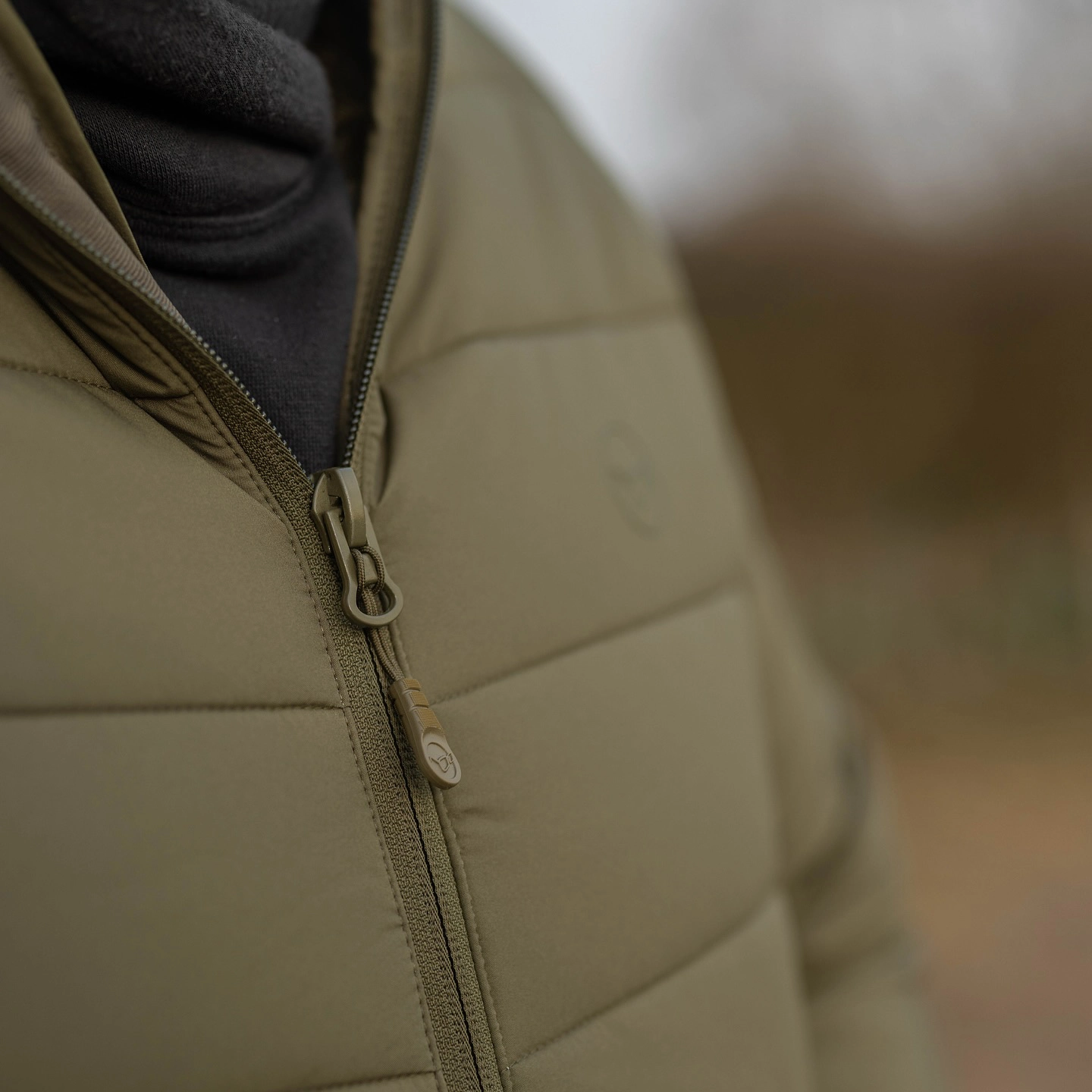 This puffer-style jacket will not only keep you warm whatever the weather but is also incredibly comfortable to wear and wont restrict your movement, thanks to the hi-tech materials used to make it. It is filled with our THERMOLITE padding, which used hollow fibre technology to provide the optimal amount of warmth from the lightest possible weight of material, and which maintains that performance even when wet which is a big advantage over traditional down-fillings. The outer shell is made from a two-layer bonded fabric which is tough enough to withstand long term use on the bank and anything you might reasonably encounter whilst wearing it, without easily tearing or snagging.