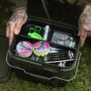 Also as part of the Korda PVA Kontainer System comes a Korda branded syringe for injecting liquids like Goo into your bags and a Korda green bait-scoop for loading them up. Both fit perfectly into the trays provided. Also inside the Korda PVA Kontainer System you’ll find 2x packets of Korda Solidz PVA Bags, 1 x medium and 1 x small. Thats 45 PVA bags to get your new and improved bagging system up and running immediately. Finally, all these items from the Korda PVA Kontainer System are all stored inside a Korda dark kamo 10L bucket and because the Korda PVA Kontainer System is a modular system, all components fit efficiently and precisely inside the bucket for easy transportation and storage.