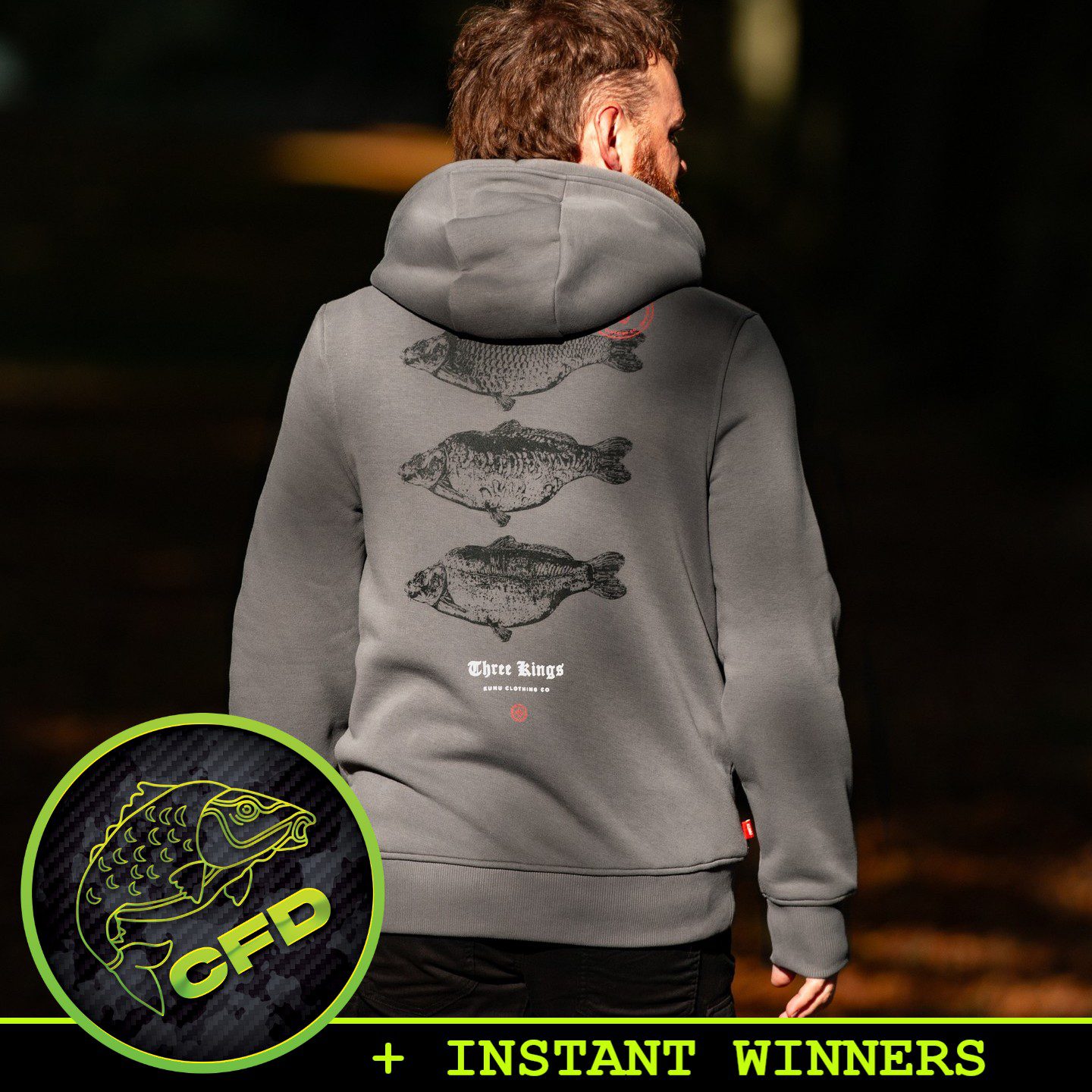 Our 3 Kings Hoodie has been created by hand using a technique known as ‘pointillism’ which uses millions of tiny dots to create areas of light and dark. Celebrating the 3 strains of King Carp we all chase. 3 colour screenprint on a super soft, 320g ‘Slate Grey’ organic fabric with woven side tab detailing.