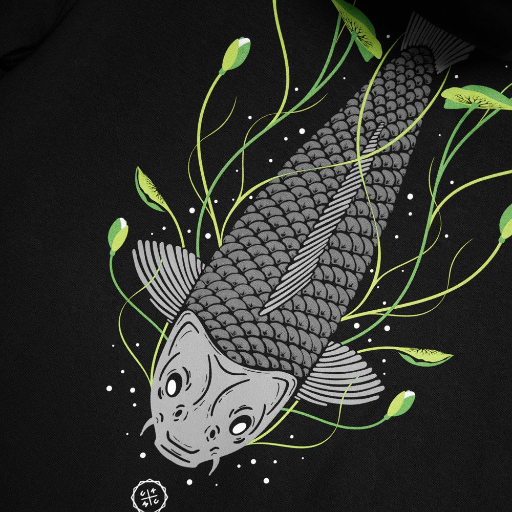 You guys have been crying out for us to produce our ‘Tails Up’ graphic in a hoodie, we we have delivered. Hand drawn, in house, from the ground up; our Tails Up graphic depicts a carp feeding in amongst Lily Pads, sending up plumes of