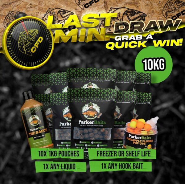 The live draw will take place on the Carp Fishing Draws Facebook page using Google’s random number generator to select the winning ticket number from all Entrants.