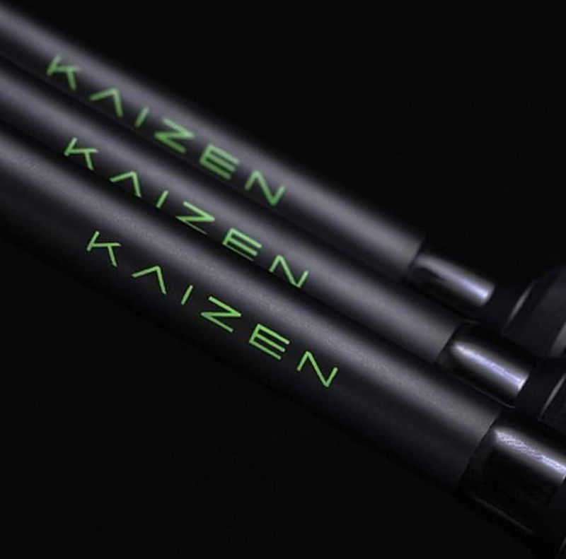 Korda Kaizen Green Carp Rods, if your wallet cant stretch to the pricey top of the range Kaizen Platinum series. The green range offers you the same technology and manufacturing process that go into producing the more expensive Platinum. Instead utilising cheaper more readily available materials to build the blanks. Fitted out with high quality Seaguide TDG lightweight stainless steel guides and secure screw down reel seats. They feature a fast tapered action that helps build compression when casting. With models from 10ft to 13ft in a wide range of casting weights.