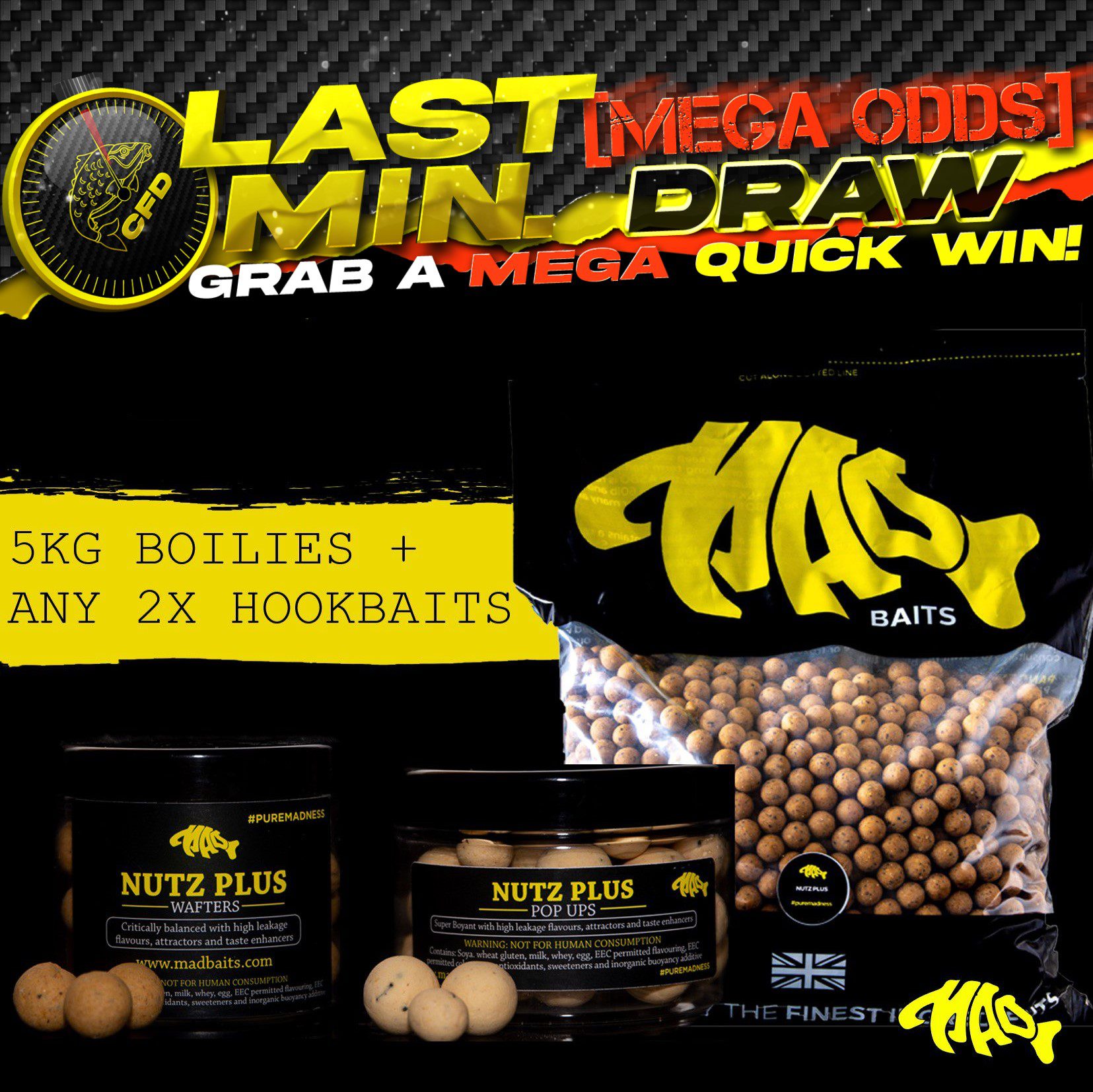 The live draw will take place on the Carp Fishing Draws Facebook page using Google’s random number generator to select the winning ticket number from all Entrants.
