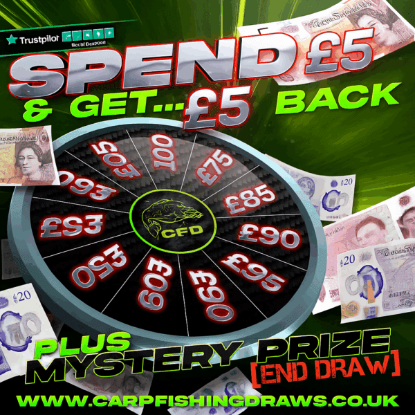You may enter the competition online or for free by post by sending your entry to Carp Fishing Draws on a postcard. You must have an account on Carp Fishing Draws for your entry to be processed. All details on your entry MUST correspond to the details on your account to receive the order confirmation and ticket number. Postal entries received without a registered account cannot be processed.