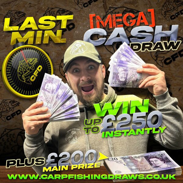 The live draw will take place on the Carp Fishing Draws Facebook page using Google’s random number generator to select the winning ticket number from all Entrants.