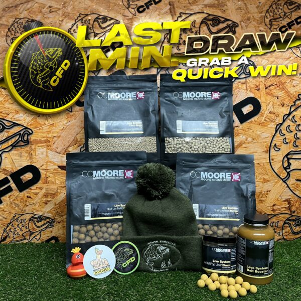 The live draw will take place on the Carp Fishing Draws Facebook page using Google’s random number generator to select the winning ticket number from all Entrants.