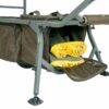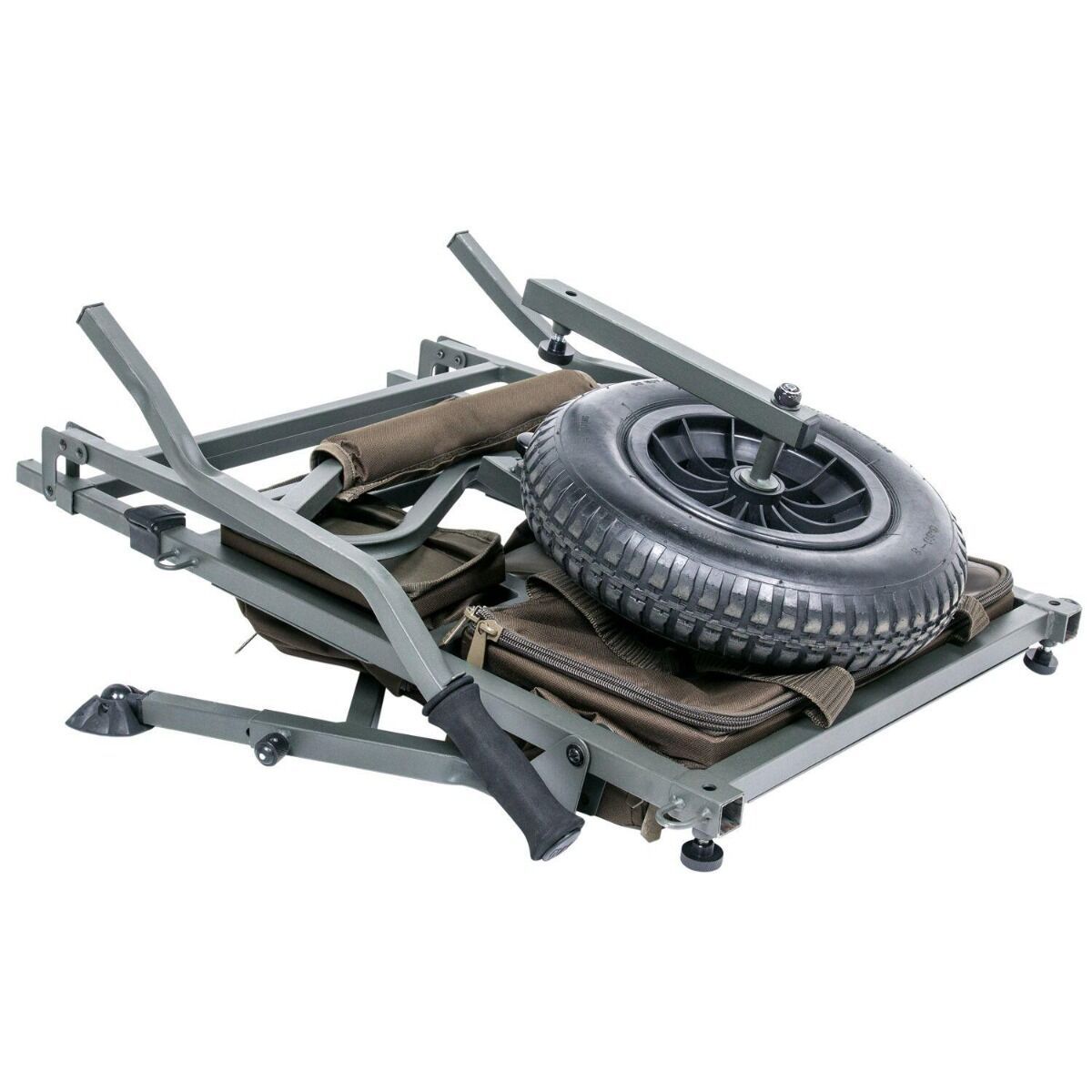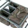 • Twin metal rimmed drop in side compartments flanking the wheels for tackle, bait and accessories with waterproof wipe clean sides