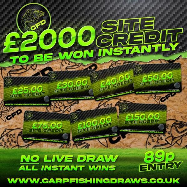 The live draw will take place on the Carp Fishing Draws Facebook page using Google’s random number generator to select the winning ticket number from all Entrants.