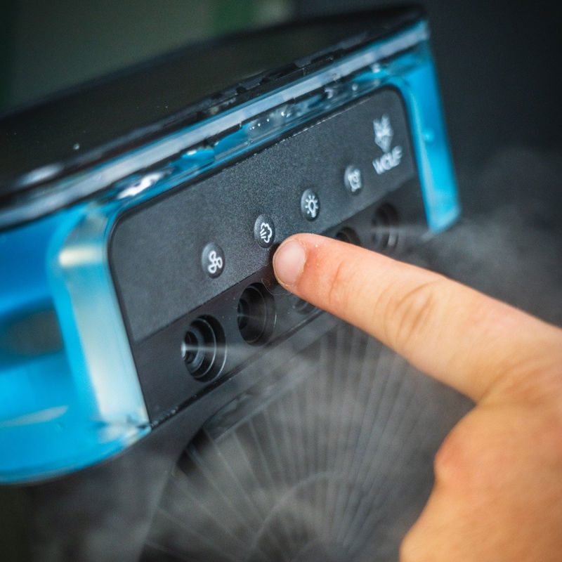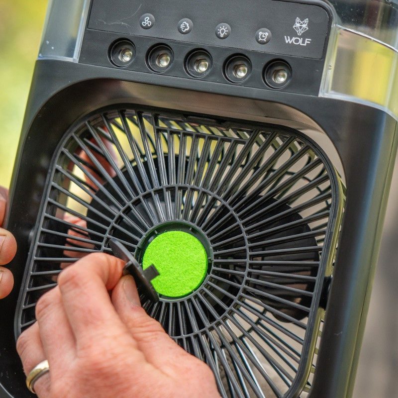 The Wolf Vapair Chilla Fan is a clever compact portable cooling solution with a fan that generates mist to keep you cool for longer periods. With a large capacity 600ml Water Tank and customizable adjustable fan position to direct airflow. There are 5 Spray Settings to achieve that perfect level of cooling and LED backlighting with 7 different colour options. Powered from a USB-C power source and with a built in timer that can be set to run for up to 3 hours.