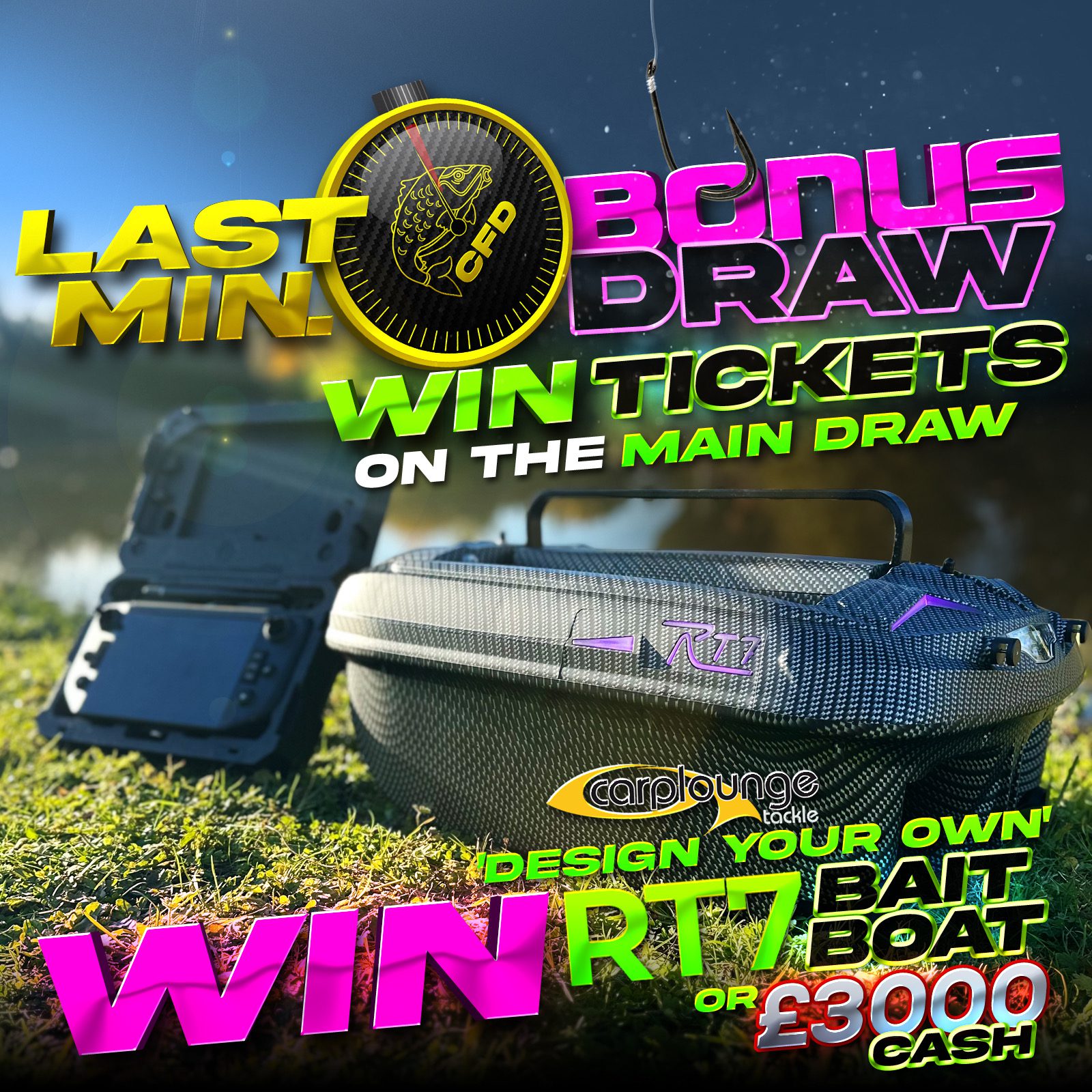The live draw will take place on the Carp Fishing Draws Facebook page using Google’s random number generator to select the winning ticket number from all Entrants.