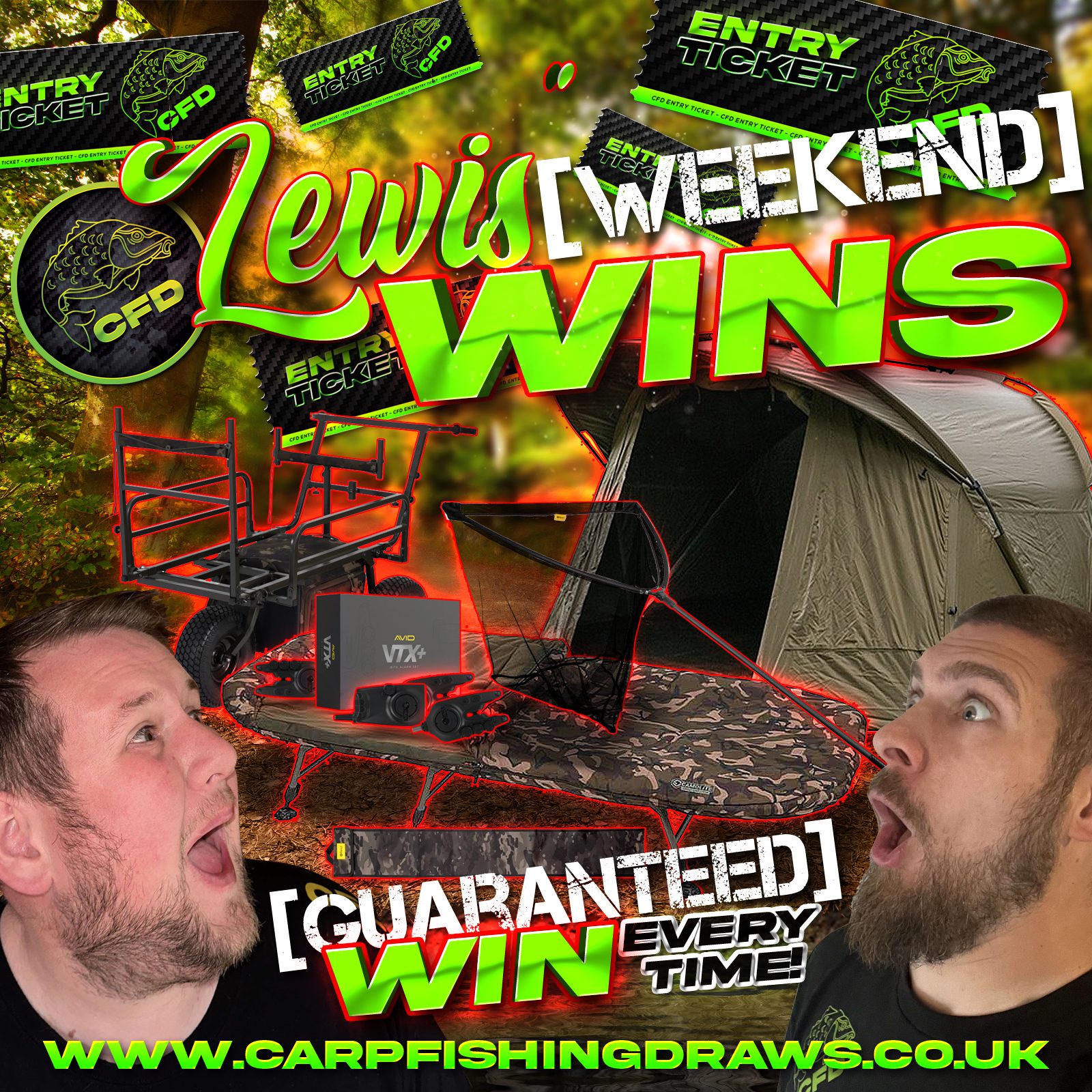 The live draw will take place on the Carp Fishing Draws Facebook page using Google’s random number generator to select the winning ticket number from all Entrants.