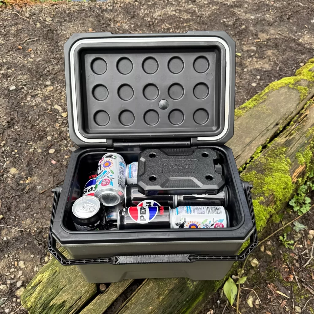 Key Features: Stylish & Durable Design: Our cooler box combines a sleek and modern look with a tough, durable exterior. It’s built to withstand the elements while keeping everything chilled.*(comes with 8 ice packs)* Cup Holder with Top Box: The cooler features a cup holder in the top box that can hold 2 cans separately for easy access. Plus, it’s super strong, able to support up to 20 stone of weight when sat on! Reinforced Portable Handle We put the cooler to the test by filling it with ice and ice packs. There was still ice left after 5 days. 16L Capacity: The cooler box holds up to 23 cans of 330ml beverages, so you’ll have plenty of space for drinks, snacks, and more. Easy to Clean: Designed for your convenience, this cooler is easy to clean and maintain after use. Durable Construction: PE Inner Liner: Food-grade material keeps your contents fresh and safe. HDPE Shell: High-density polyethylene offers enhanced wear resistance and impact protection. PU Insulation Layer: High-density foam ensures superior cold retention for longer-lasting cooling. Dimensions: