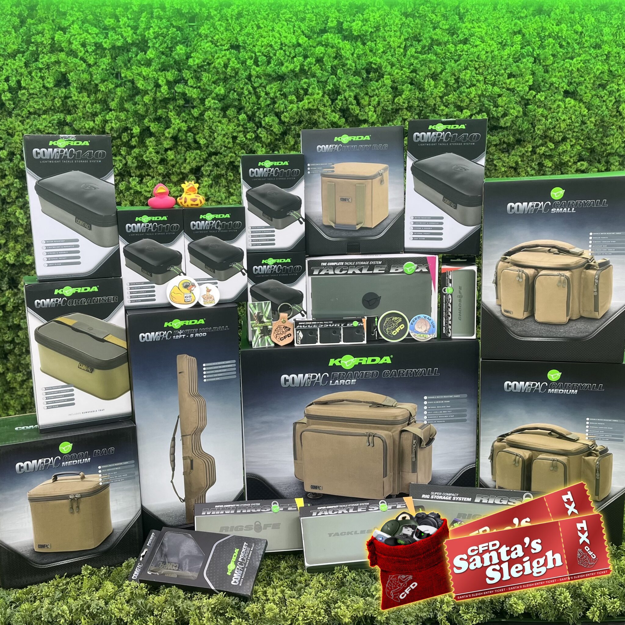 12ft 5-Rod Divide Holdall, Large Framed Carryall, Medium Carryall, Small Carryall, Medium Cool Bag, 2x Compac 140’s, 4x Compac 110’s, Compac Organiser, Compac Utility Bag, Tackle Box, Chod Safe, Rig Safe, Mini Rig Safe, Tackle Safe, Accessory Boxes, Large Compac Pocket Storage Wallet, Tubing Box.. And we’ve even included 2x CFD Lucky Duckys, Sticker Set & CFD Keyring!!
