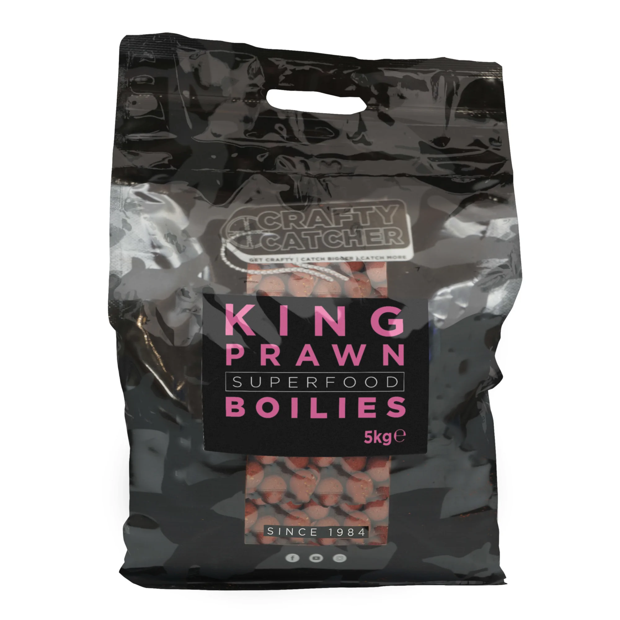 “King Prawn is the ultimate big carp bait! Low temperature fishmeal, soluble krill protein extract, krill meal, fermented shrimp paste and brewers yeast give this premium boilie a fantastic food and attractor profile. Freshly rolled with optimum levels of milk proteins and ground bird foods this bait is a proven big fish catcher. We have sourced the original prawn flavour from the mid eighties that was responsible for multiple catches of big carp all over Europe – including some proper lumps from Cassien and Salagou!”