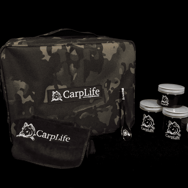 Supplied with a handy CarpLife Microfibre Hand Towel, Black Etched Tea Spoon and 4 food grade CarpLife pots for tea, coffee, sugar and seasoning.