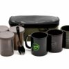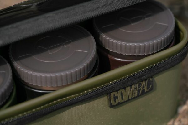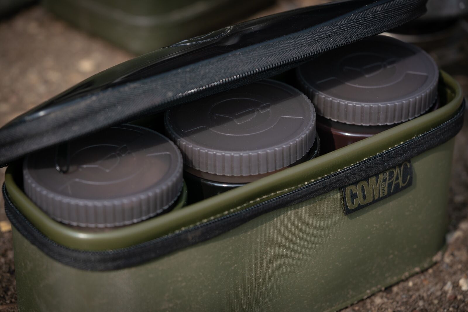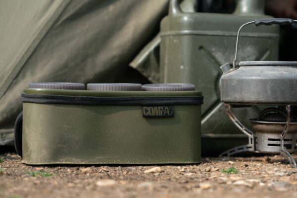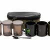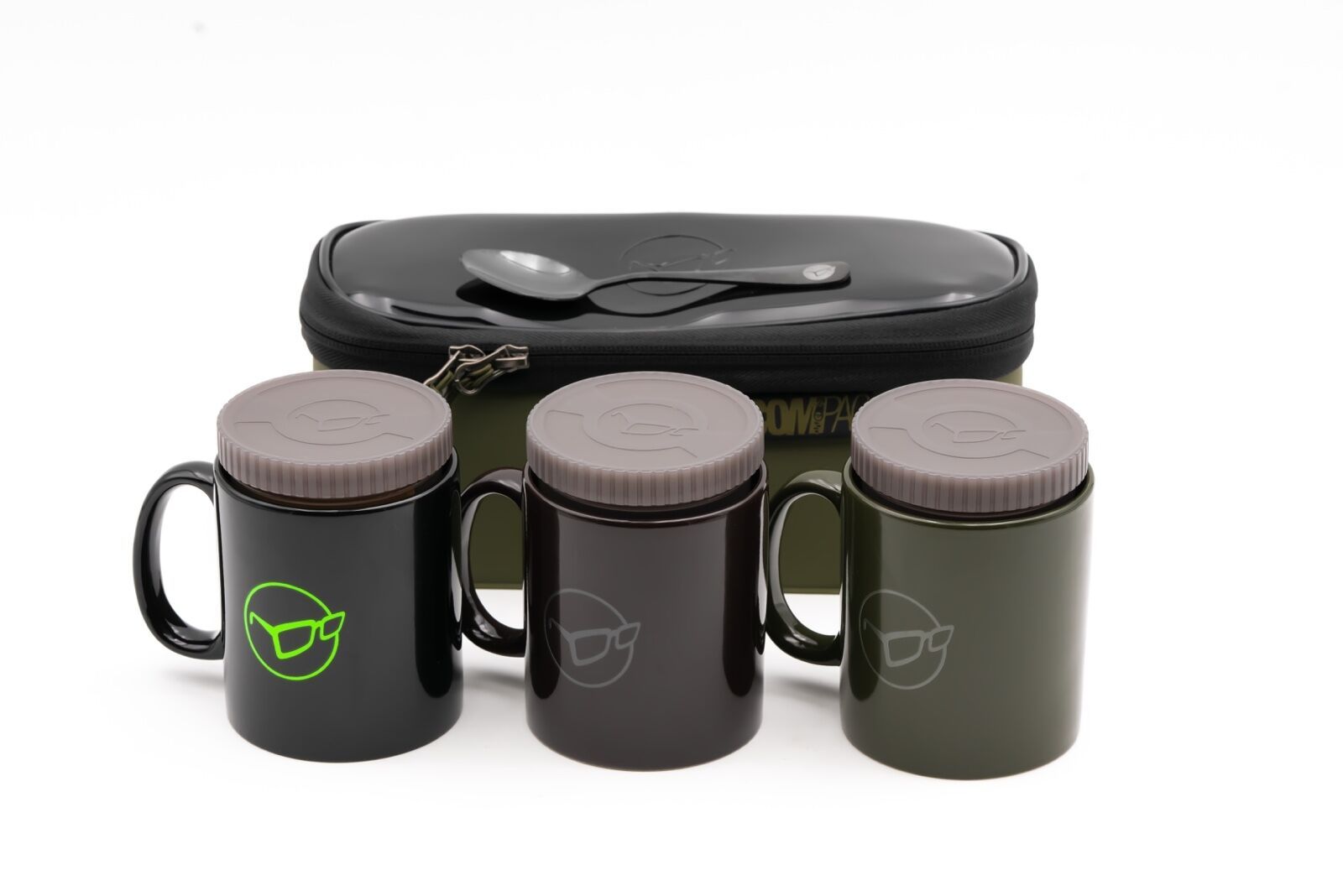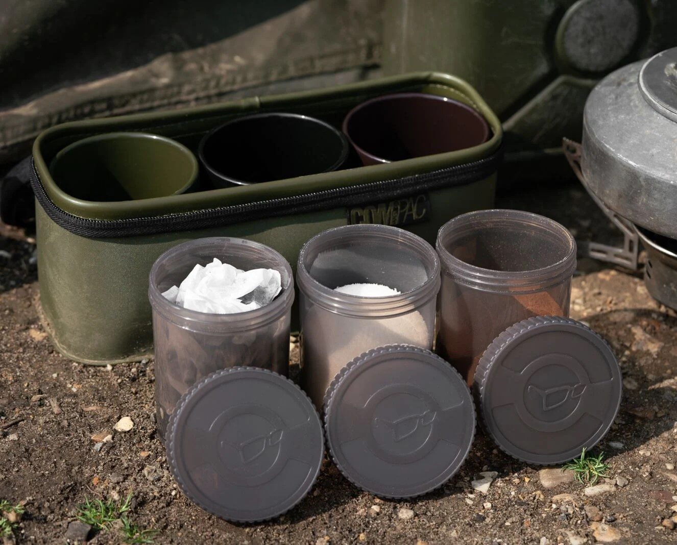 3 Piece Compac Tea SetOur range of EVA pouches have been a huge success and anglers use them for storing all sorts of things, and now there is one specifically for your brew kit, in the form of the Compac Tea Set, which ensures that making a cuppa on the bank has never been easier.Like all of our Compac range, the Tea Set pouches are waterproof, with welded seams, and a transparent, zippedlid to make the contents easily identifiable, as well as being easy to wipe clean. It comes complete with three of our new high quality china mugs, which come with a high gloss finish, an ergonomically shaped handle, and a large Korda logo on the exterior–a two-mug version will be available later in the year. Each kit also features three plastic pots, with screw tops embossed with the Korda logo, and designed for storing your coffee, tea bags and sugar. The Compac Tea Setis completed with one final essential item when it comes to making a cuppa –a black-plated stainless steel teaspoon, complete with a laser-etched Korda logo.