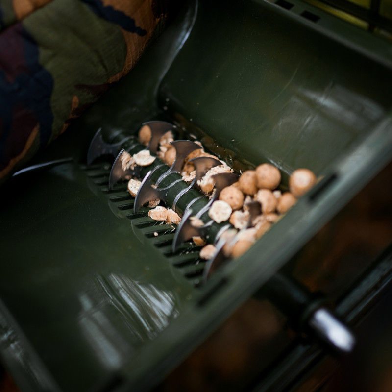 The Ridge Monkey Advanced Boilie Crusher, now available as a full kit along with the matching 17 litre modular bucket system. The ultimate way to crush and crumble boilies en-mass saving you both time and effort. Capable of processing over a Kilo of boilies in well under a minute. Giving a nice range of varied broken pieces thanks to the non identical blade pattern used in the head unit. If your wanting to mill down some smaller particle baits, the Advanced Boilie Crusher Particle Plate is available separately.