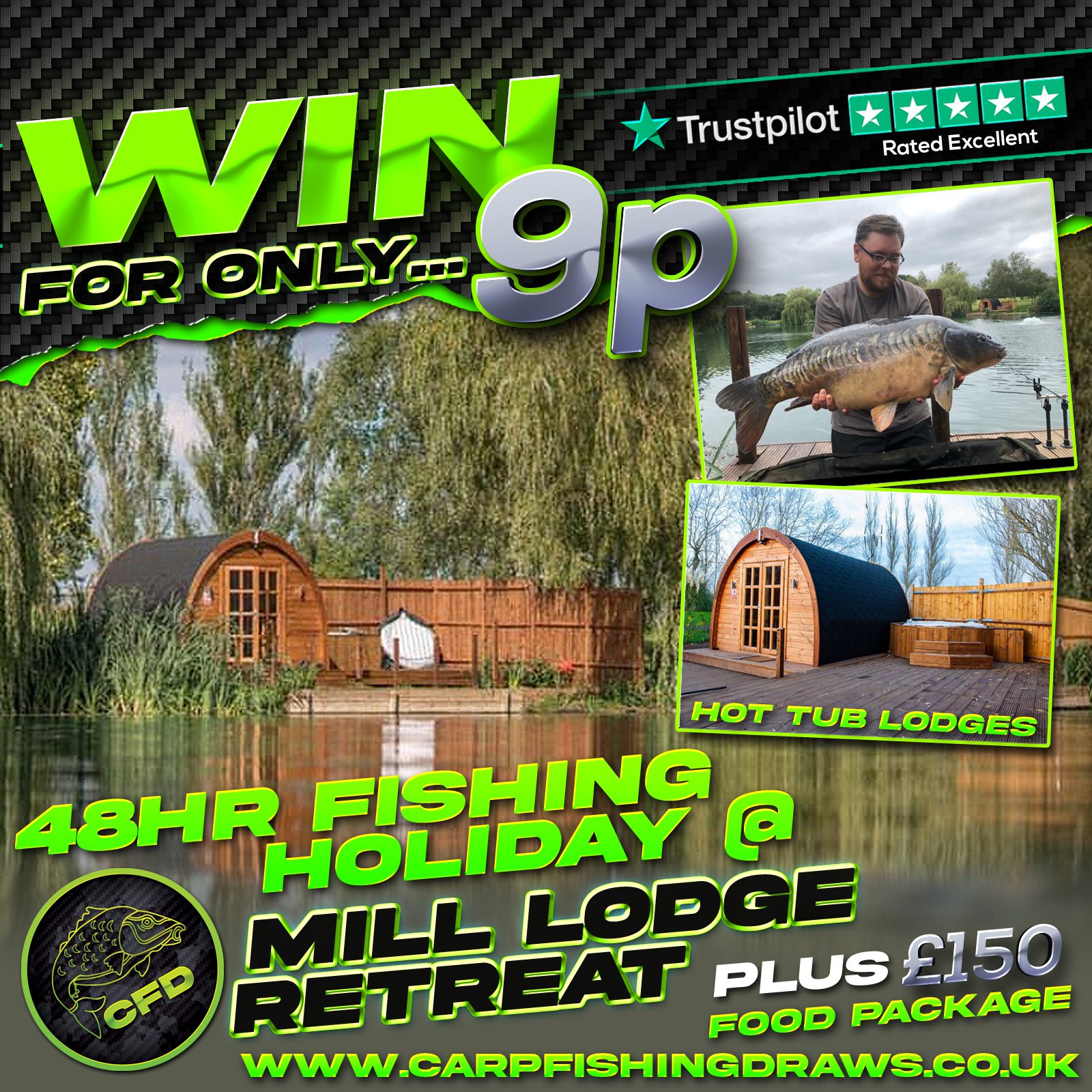The live draw will take place on the Carp Fishing Draws Facebook page using Google’s random number generator to select the winning ticket number from all Entrants.