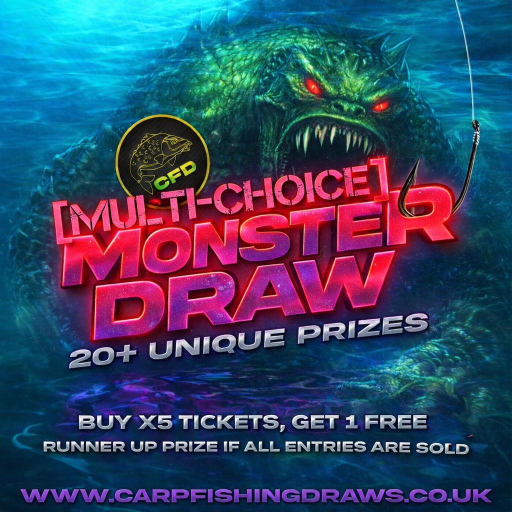 You may enter the competition online or for free by post by sending your entry to Carp Fishing Draws on a postcard. You must have an account on Carp Fishing Draws for your entry to be processed. All details on your entry MUST correspond to the details on your account to receive the order confirmation and ticket number. Postal entries received without a registered account cannot be processed.