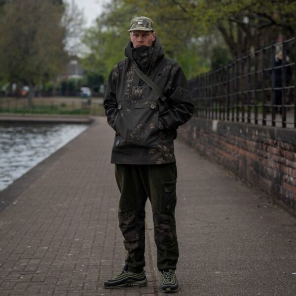 The Scope Smock’s ace card is the concealed pouch at the base of the central zip, which reveals a stash away mosquito mesh face cover – that quickly zips around the leading edge of the hood. Leaving generous internal space for head movement and comfort it minimizes interference and irritation for the wearer but keeps all biting insects away. It’s the instant solution to tackling venues and specific swims that are normally off limits because they are so difficult to endure for the angler.