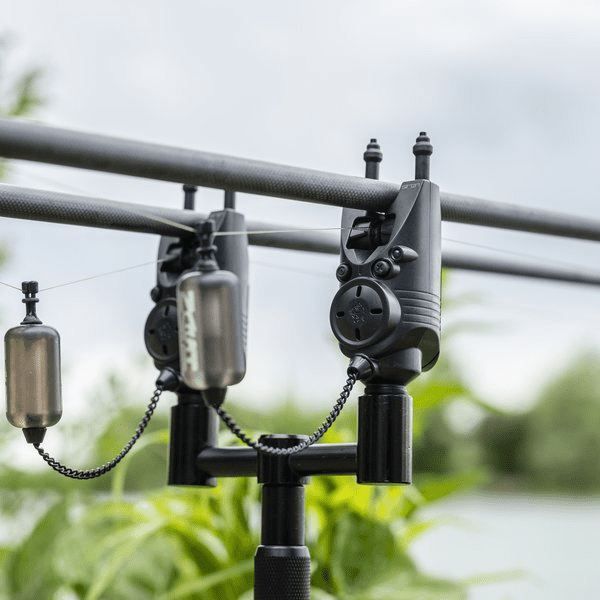 The Nash Siren R2 series compact bite alarms, available in a two or three rod presentation set complete with a matching receiver. The R2 is ideal for anglers that prefer a smaller alarm head, and has a screw thread for adding Nash bobbins and slap heads. Each alarm is capable of switching between five different LED colour options, so your no longer stuck with the colour you order. With six sensitivity settings, four volume and five tone settings there’s plenty of scope to tweak your setup. There’s also a low battery warning gives you plenty of notice before you run out of juice