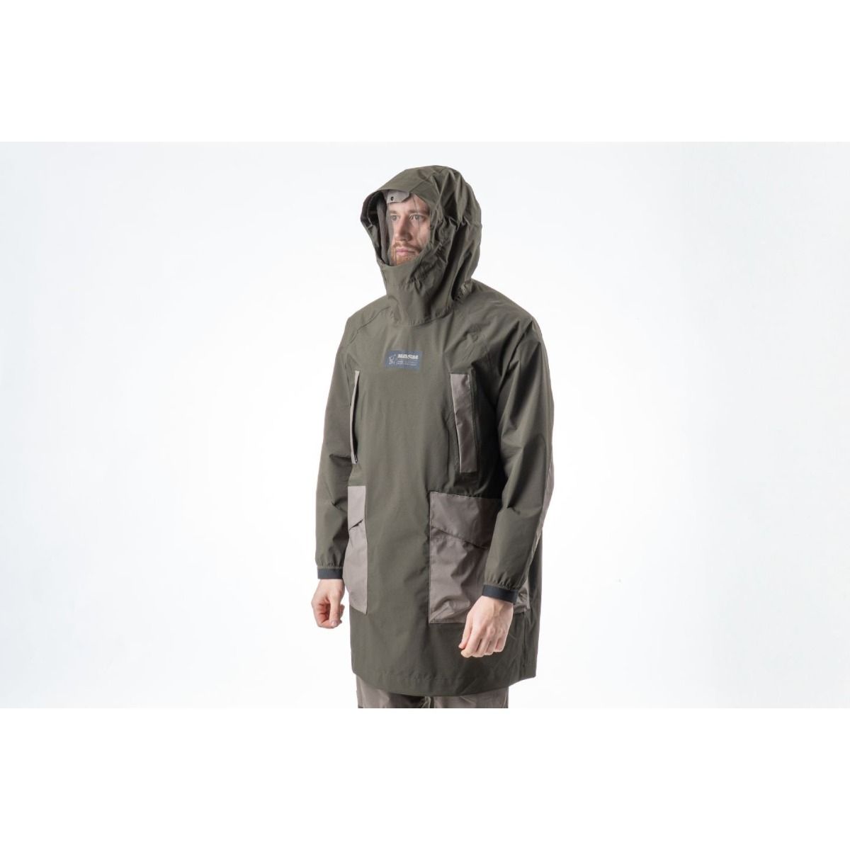 The fully taped 2-layer fabric with a water column of 15,000mm and a breathability of 20,000g/m²/24h ensures a pleasant body climate, even during active movement. The Smock offers functional details such as a size-adjustable hood with integrated, fold-down mosquito net, two large patch front pockets and a zippered chest pocket for securely stowing important items.