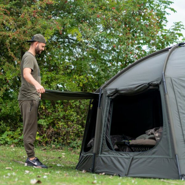 The latest T2 two man version of the best selling Nash Titan series award winning Bivvy design that’s stood the test of time. The latest edition features an extended frame that gives plenty of headroom inside, and gives a great view of the water in front of you. Fitted with an Internal vapour shield that reduces condensation build up on the roof. Supplied with a HD groundsheet with foldback door flap, so you can remove boots and shoes inside your shelter without standing on the groundsheet itself. With a frontage that you can remove completely, and with PVC and mozzi mesh centre panels that can be used independently or in combination.