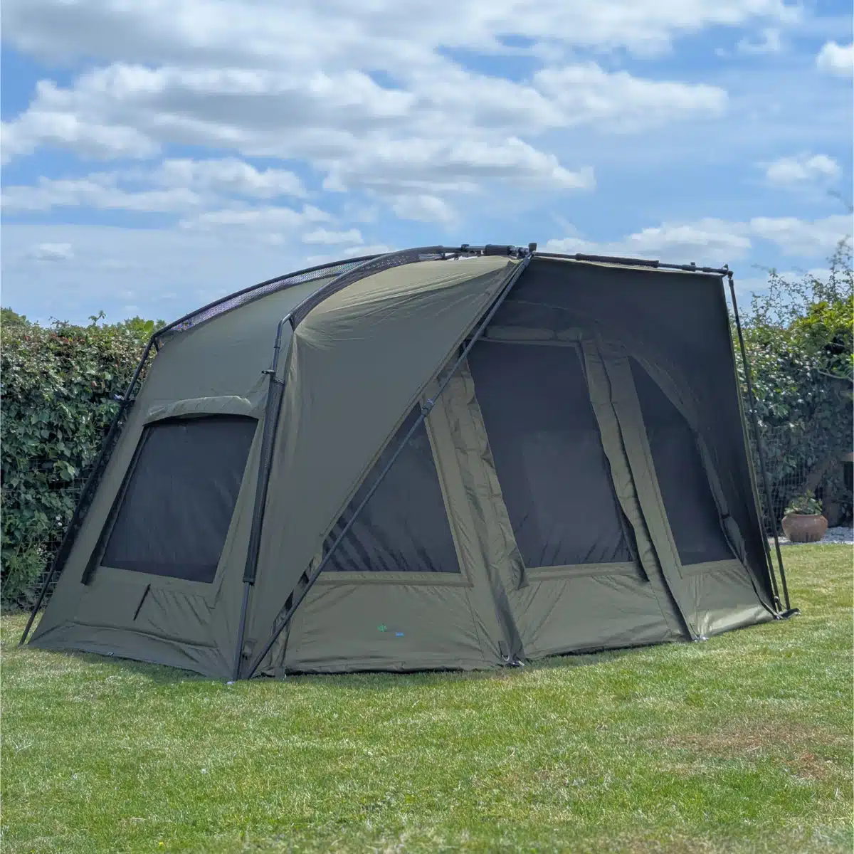 The strong aluminium frame and smart design mean you can have your bivvy up in under a minute. No faff, no fuss — just reliable shelter so you can spend more time fishing and less time wrestling with your kit.