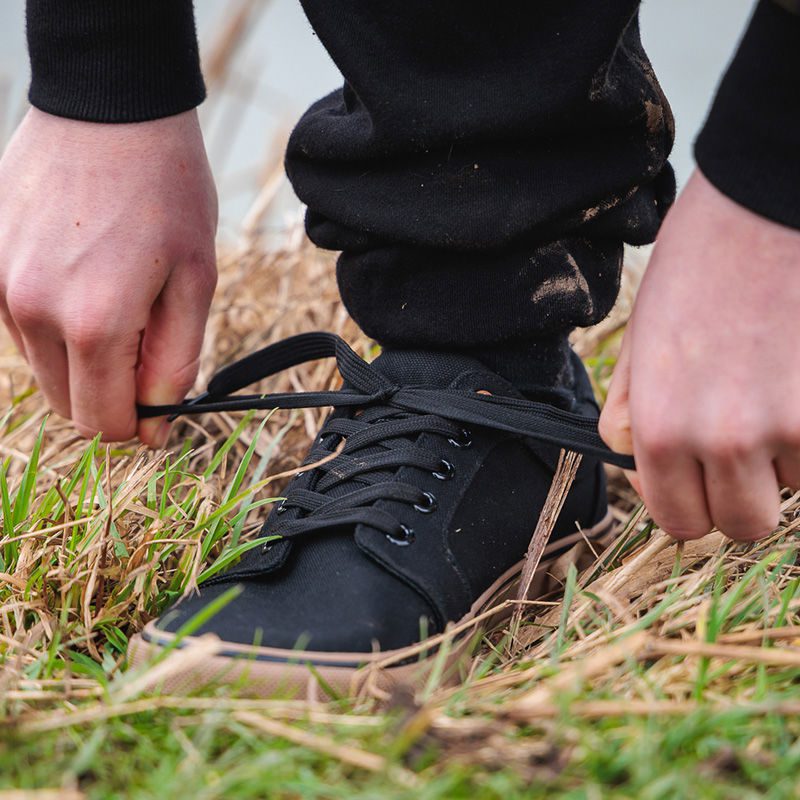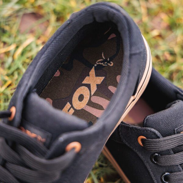 Fox Black Canvas Shoes, comfortable lightweight footwear ideal for the dry warmer months of the year. With a canvas upper, vulcanised gum sole and padded ankle collar and tongue.