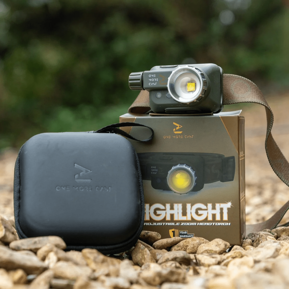 Theย OMCย Head Torch that does it ALL! Incredible Zoom Beam, Adjustable Lumen dial, USB-C Rechargeable, Hand Swipe on/off switch, impeccable Tonal One More Cast Branded Head Band! This HEADTORCH is justย ALL ROUND BRILLIANT!