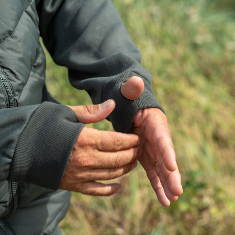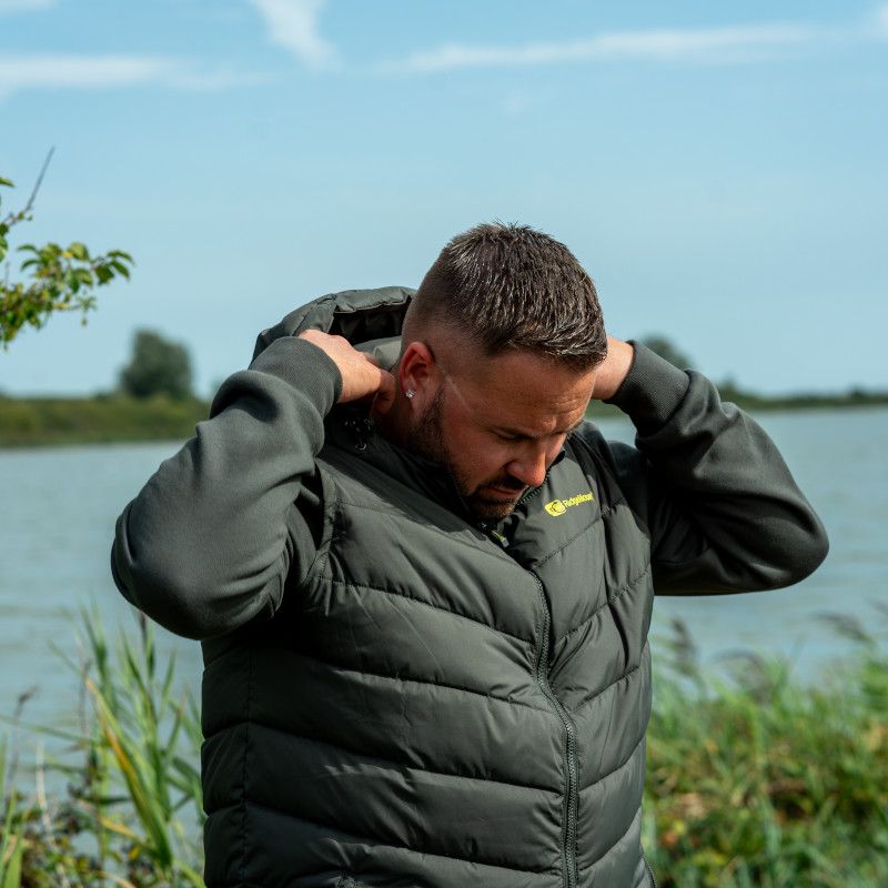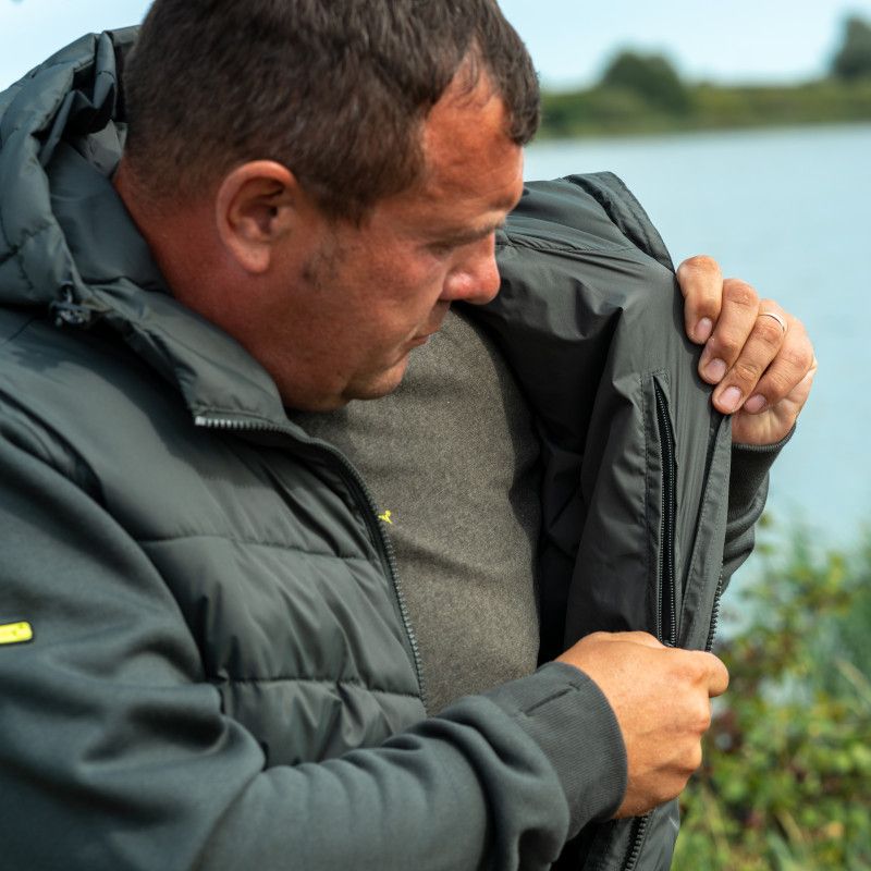 Ridge Monkey APEarel ThermaPro Hybrid Coat Green gives you a perfect blend of warmth and comfort. Featuring a thermally insulated synthetic down, padded main body and articulated, fleece-lined arms. With an adjustable high-necked, shell-style hood and elasticated sleeves and thumbholes to keep out drafts. A zipped chest pocket, along with two zipped side pockets provide plenty of space to store your essentials. Elasticated toggles on the collar and hem allow for fine tuning and adjustment for a more comfortable fit.