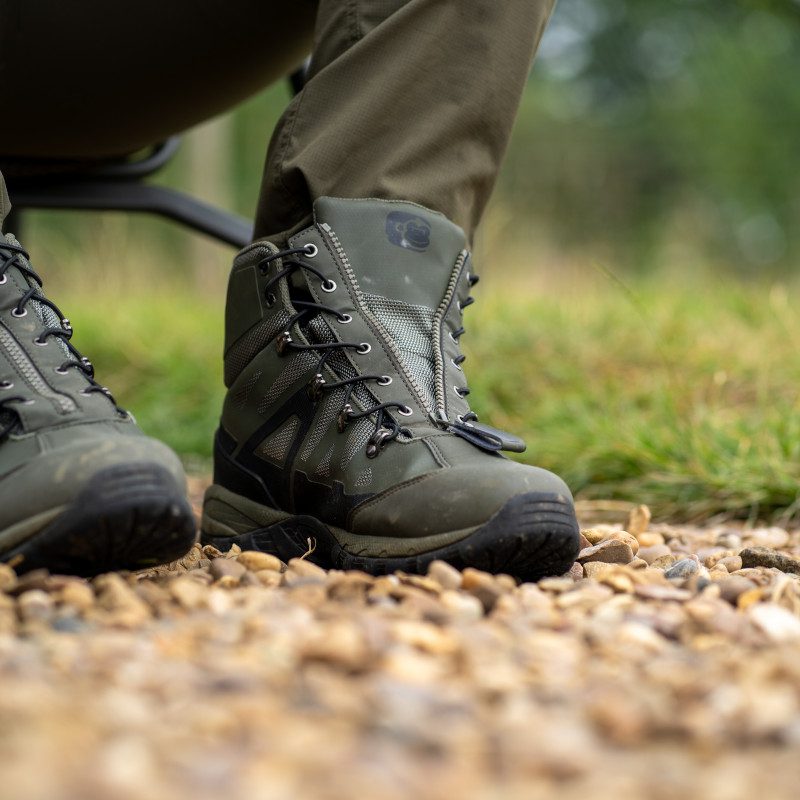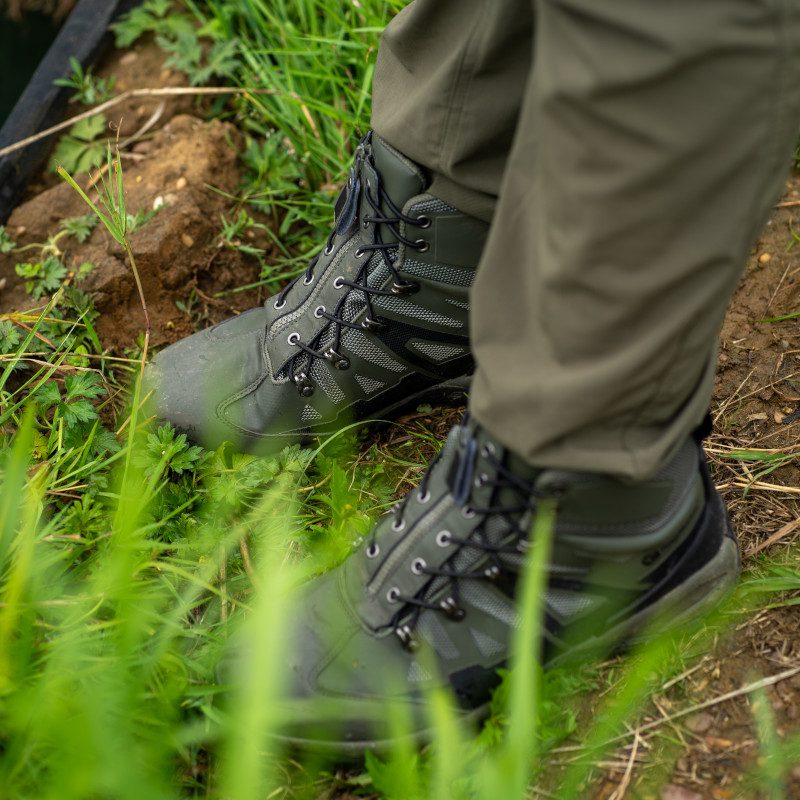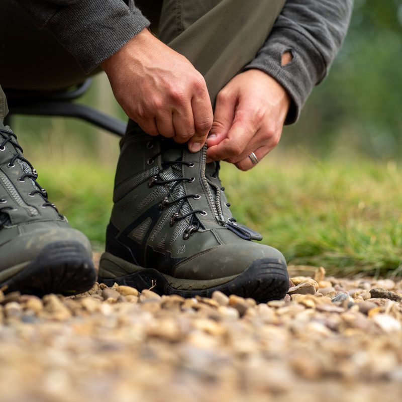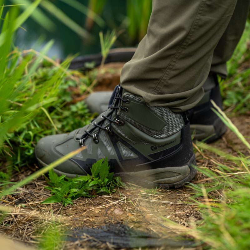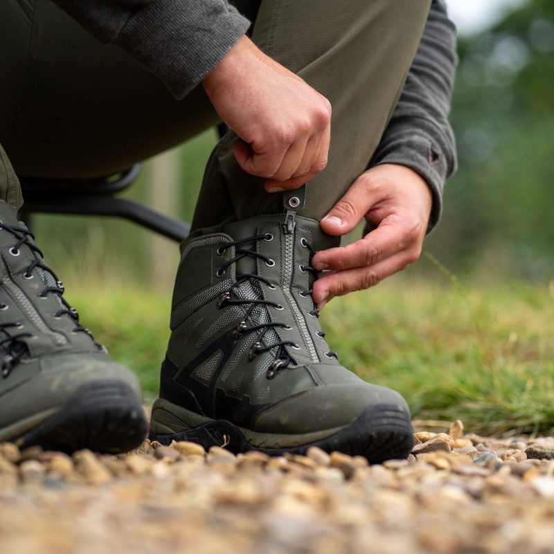 Ridge Monkey APEarel QuickZip All-Weather Boots feature the unique QuickZip design to easily slip into your boots and secure them with a one-handed motion. With elasticated laces and a low cut heel for ultra-fast access. They can be worn fully open, secured using the zip only or fully zipped with tightened laces for longer walks and when full waterproofing is needed.
