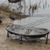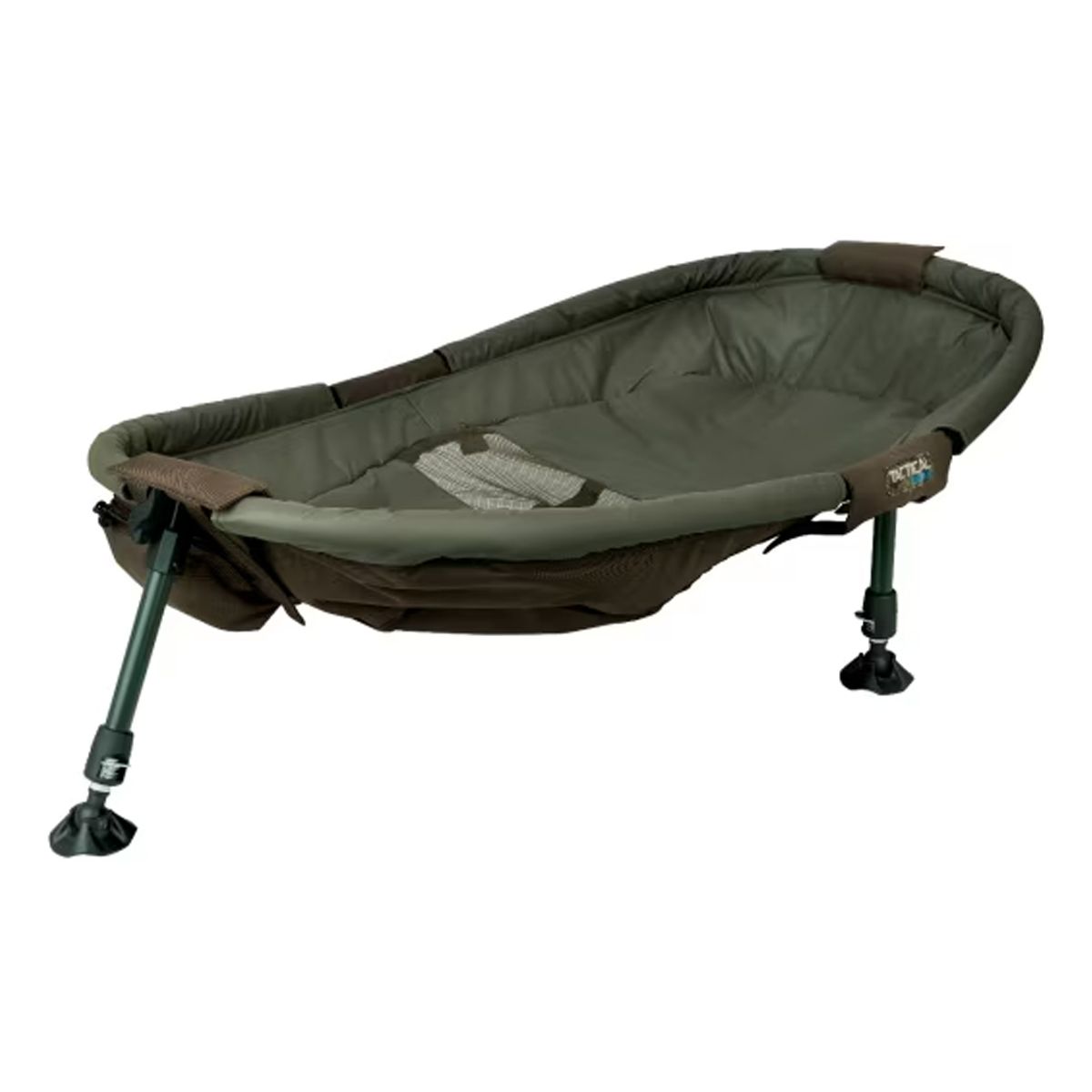 Super fast fold away design. Smaller size than the Trench Gear version. Curved centre frame to stop pressing wrists against frame when lifting big fish. Curved frame so that bars do not show in photos. Elasticated mesh water absorbing air flow cover in side pocket.