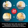 Simply fill a tub with ingredients, pop in the freezer for 24 hours, then process to perfection in minutes when you’re ready to serve! Creamify Technology transforms your frozen base into a creamy treat. Indulgent, low sugar, dairy free or vegan – the choice is yours!