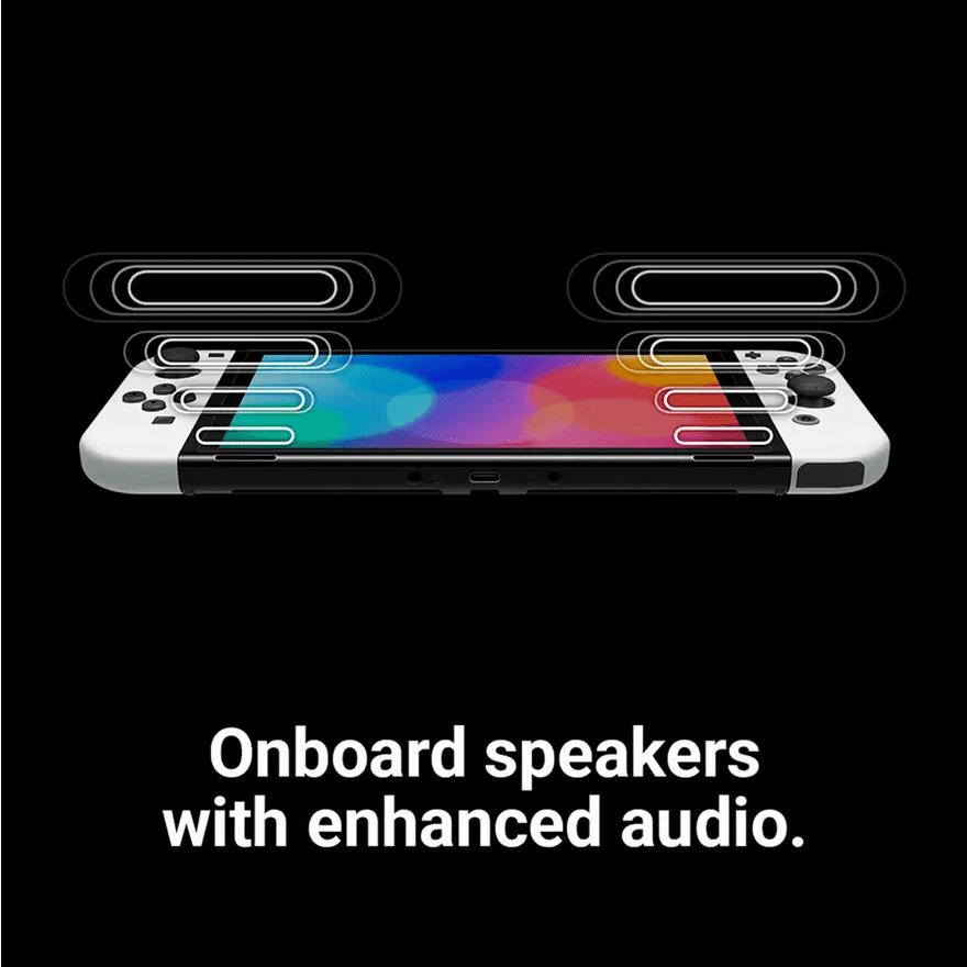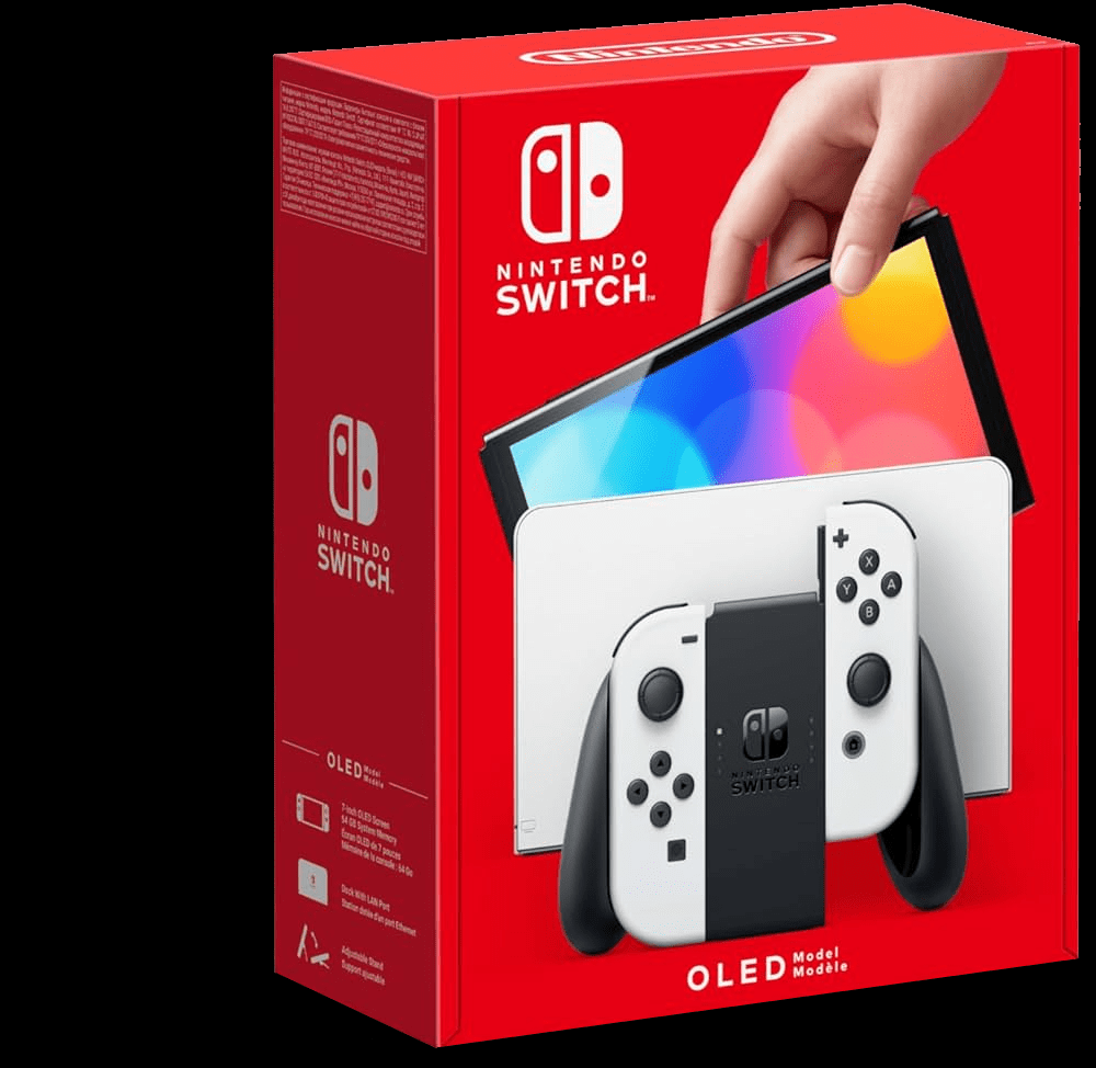 • Pick it up and play with the Joy-Con controllers attached. Nintendo Switch (OLED model) includes a vibrant 7-inch OLED screen with a slimmer bezel. The large screen’s vivid colours and high contrast deliver a rich handheld and tabletop gaming experience, bringing games to life whether you’re racing at top speed or squaring off against enemies.