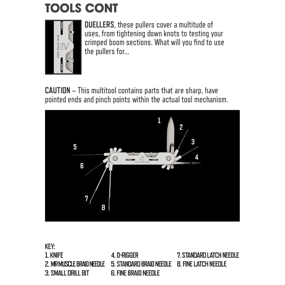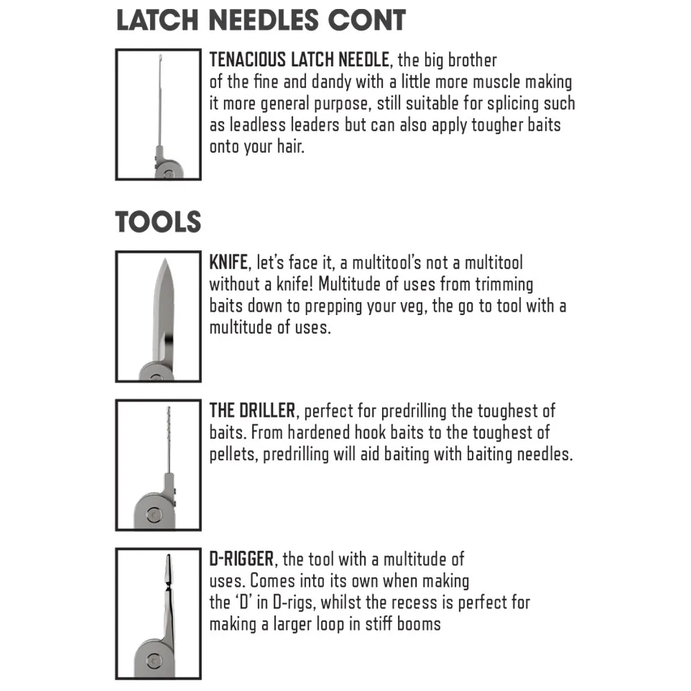 10 TOOLS all in one cutting-edge stainless steel design, giving you a “very cool tool” but also no more wasted plastic handles on broken Baiting Tools and Needles.