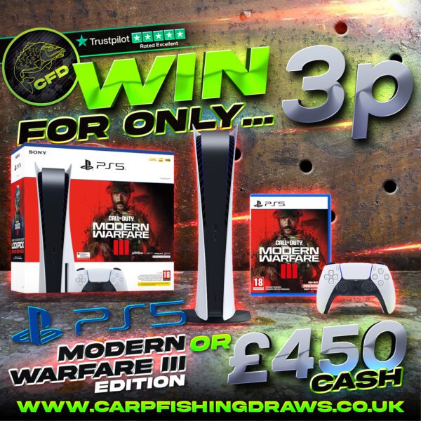 You may enter the competition online or for free by post by sending your entry to Carp Fishing Draws on a postcard. You must have an account on Carp Fishing Draws for your entry to be processed. All details on your entry MUST correspond to the details on your account to receive the order confirmation and ticket number. Postal entries received without a registered account cannot be processed.