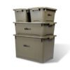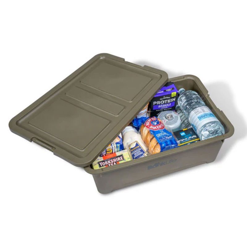 Nash Bank Life Stacker Storage Boxes, heavy duty, weather resistant storage boxes ideal for for keeping food, clothing and essential equipment dry. Featuring a stackable design with a reinforced base locating on the slots on a Stacker Box below. With secure locking clips doubling as carry handles and available in three size options.