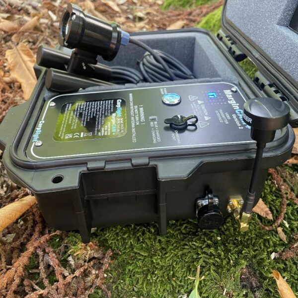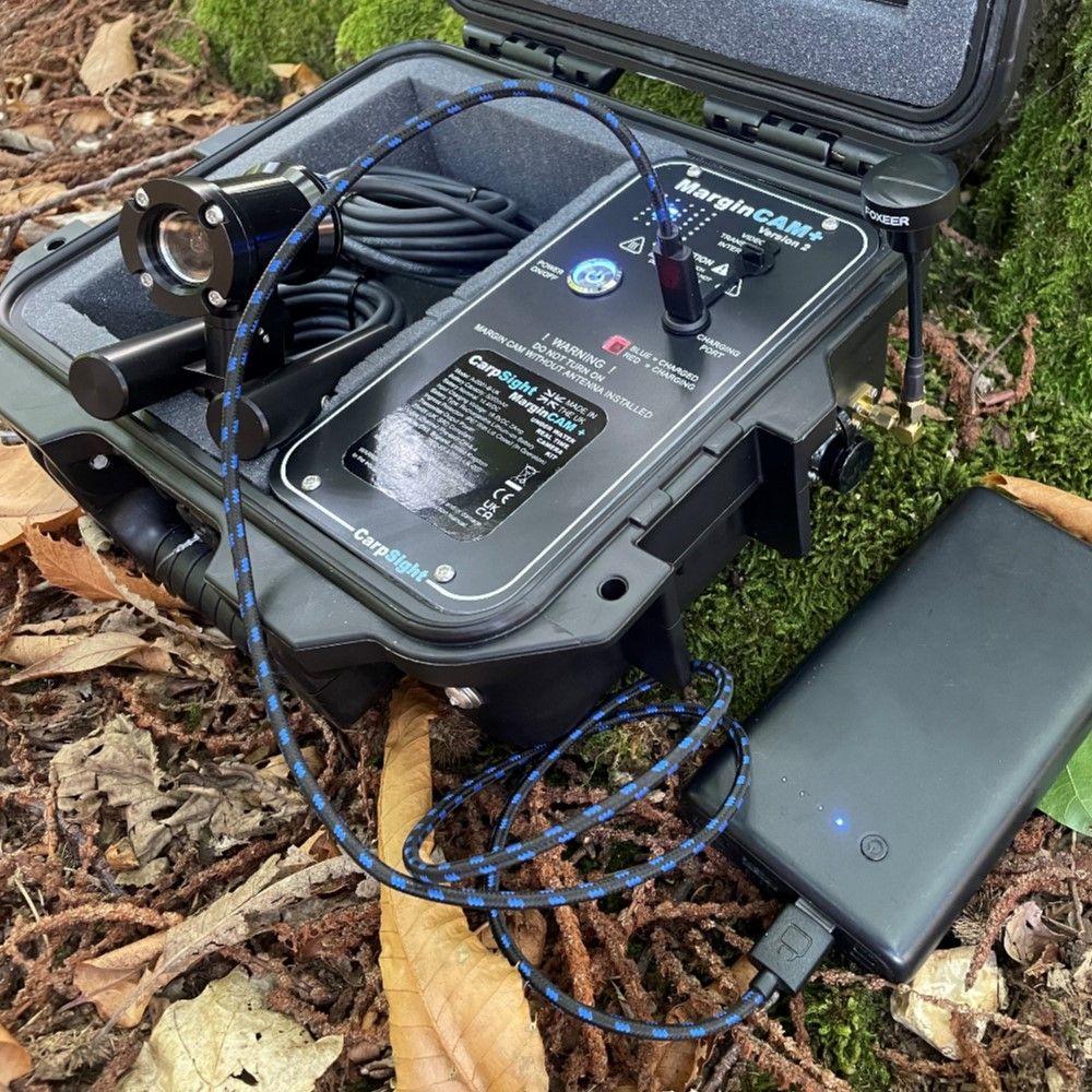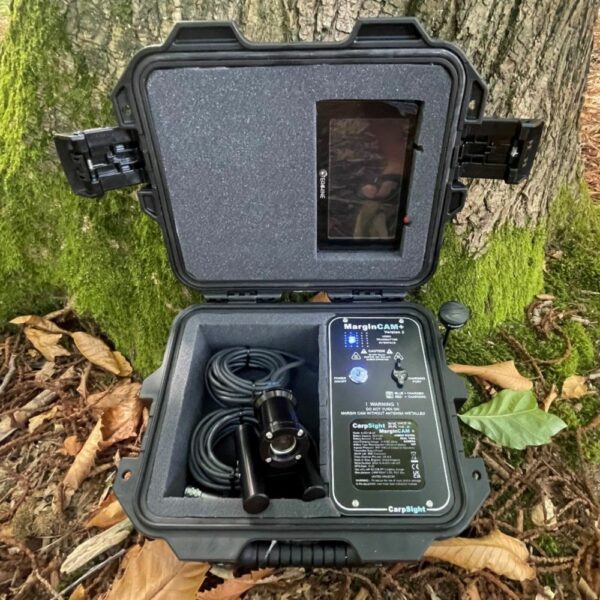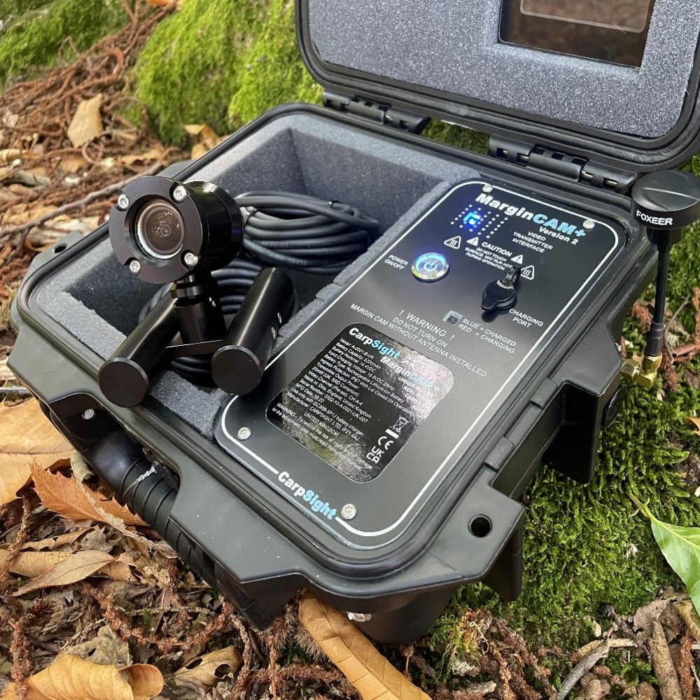 The MarginCAM+ Version 2 is CarpSight’s latest edition extended range (wireless communications) state of the art real-time camera kit. The camera assembly is simply deployed from the lakes margin/ river bank. The perfectly weighted design allows the camera to land feet first onto the lake or river bed, aligning the camera perfectly!